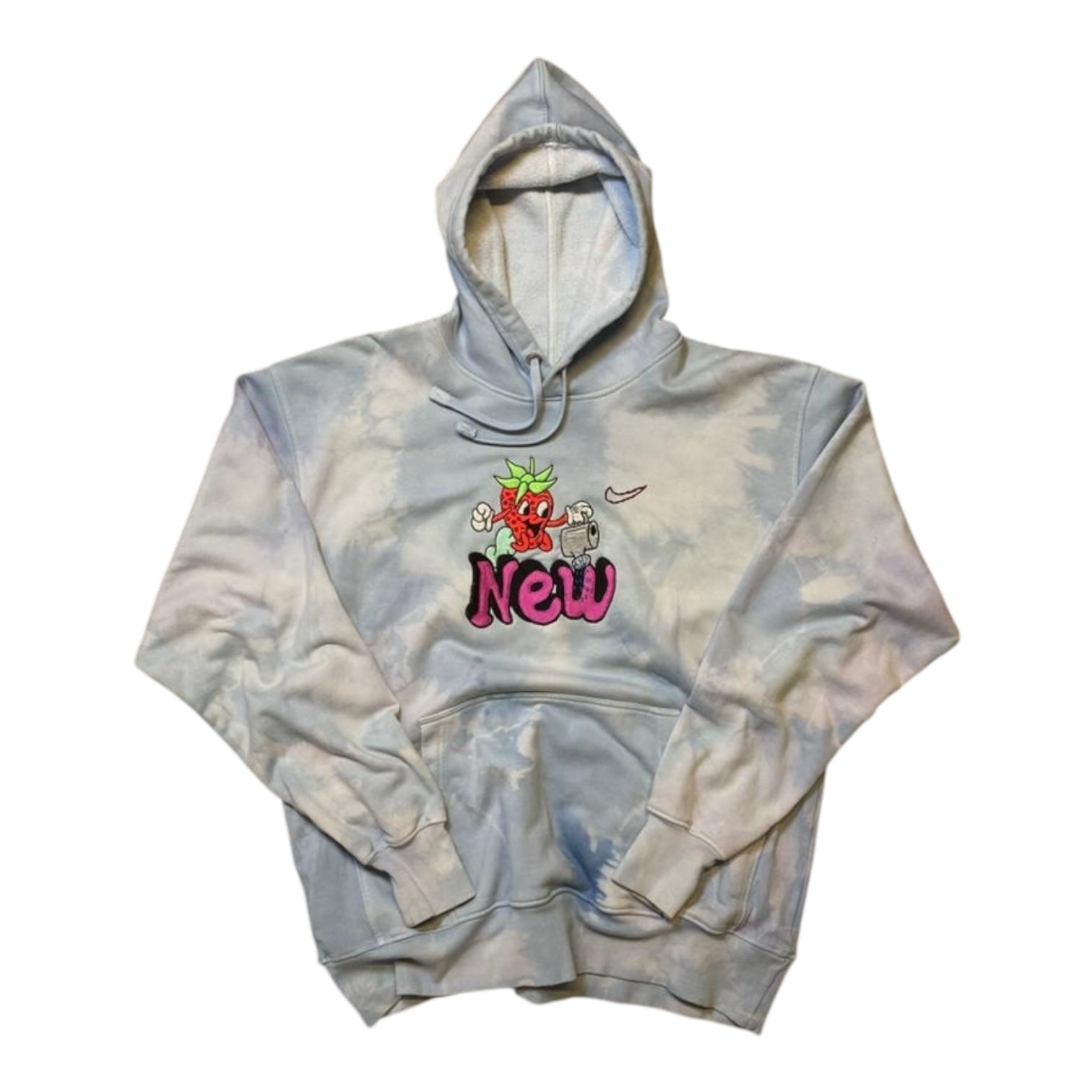 100% New Strawberry Embroidered Blue Dye Hoodie