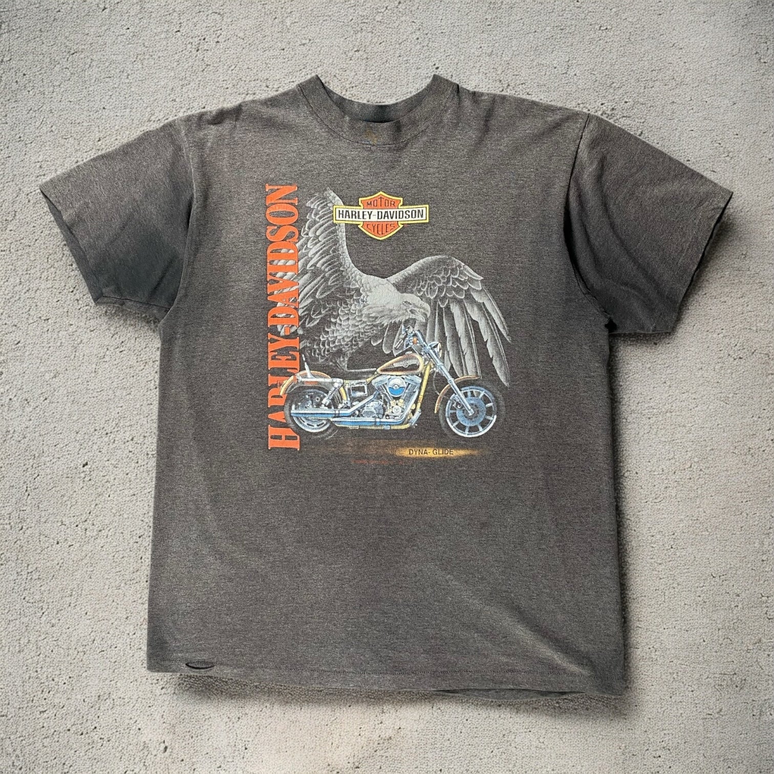 Classic 1991 vintage Harley Davidson tee featuring the DYNA-GLIDE graphic, offering a relaxed fit and authentic biker style.