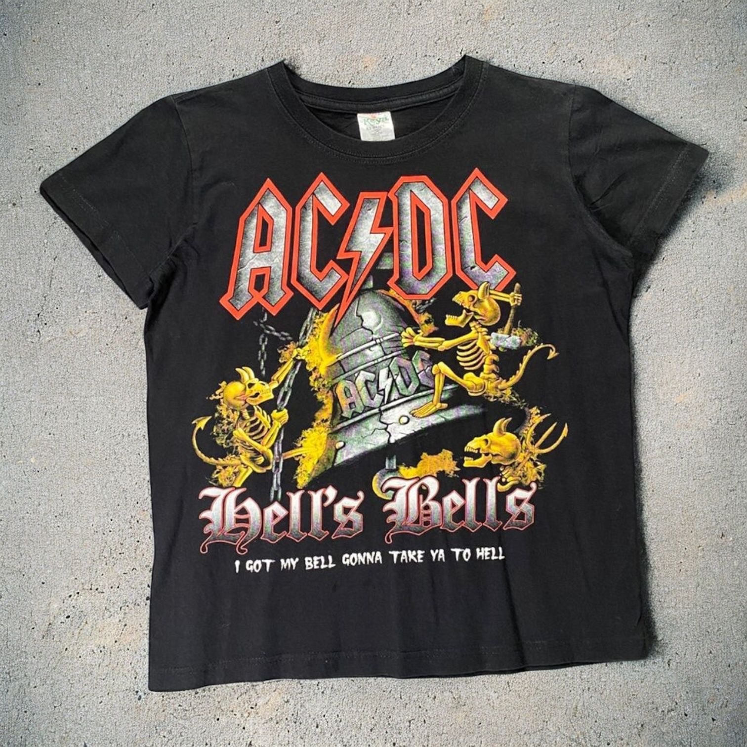 AC/DC Hell's Bells T-shirt featuring iconic band graphics with vintage rock style. A must-have for music fans and streetwear enthusiasts alike.