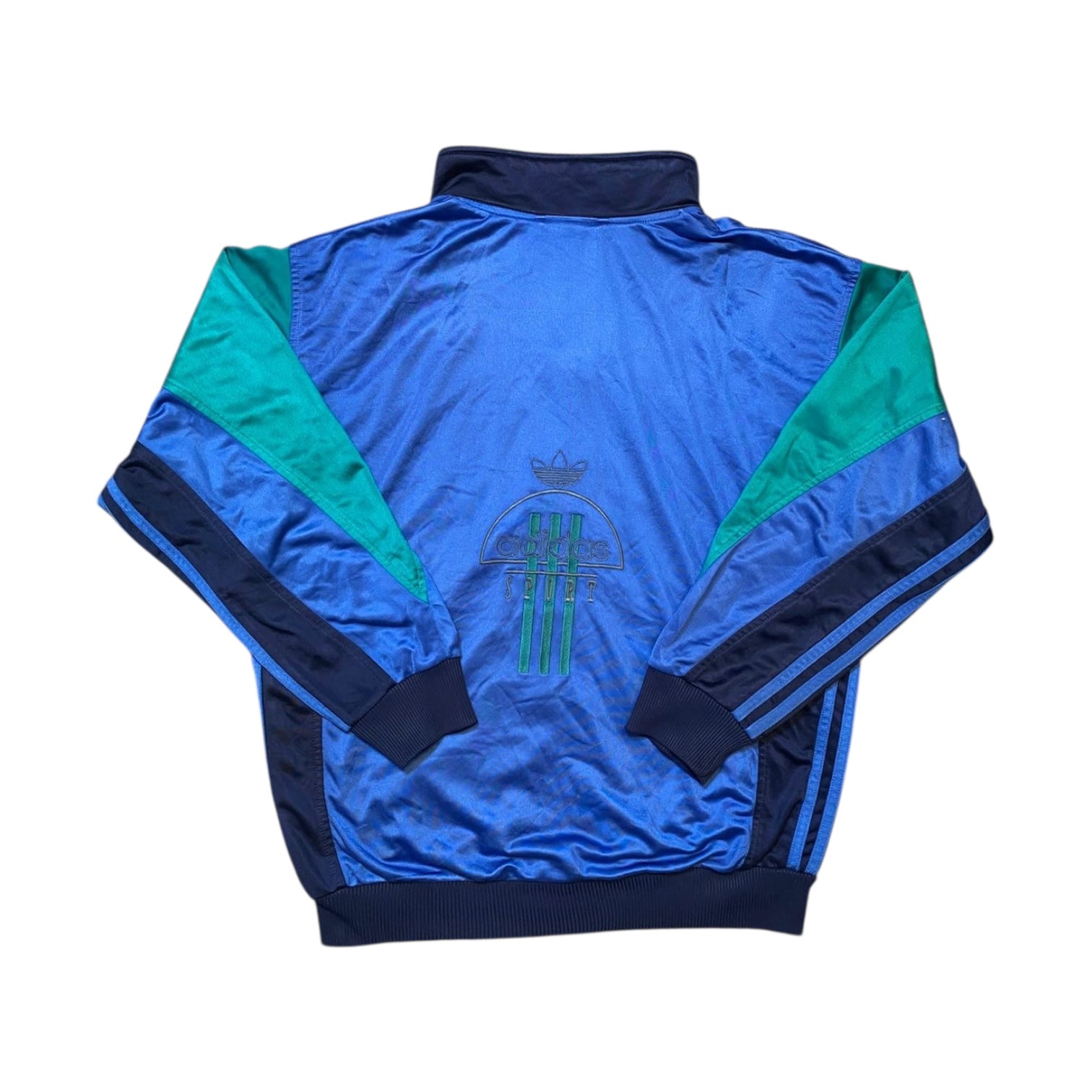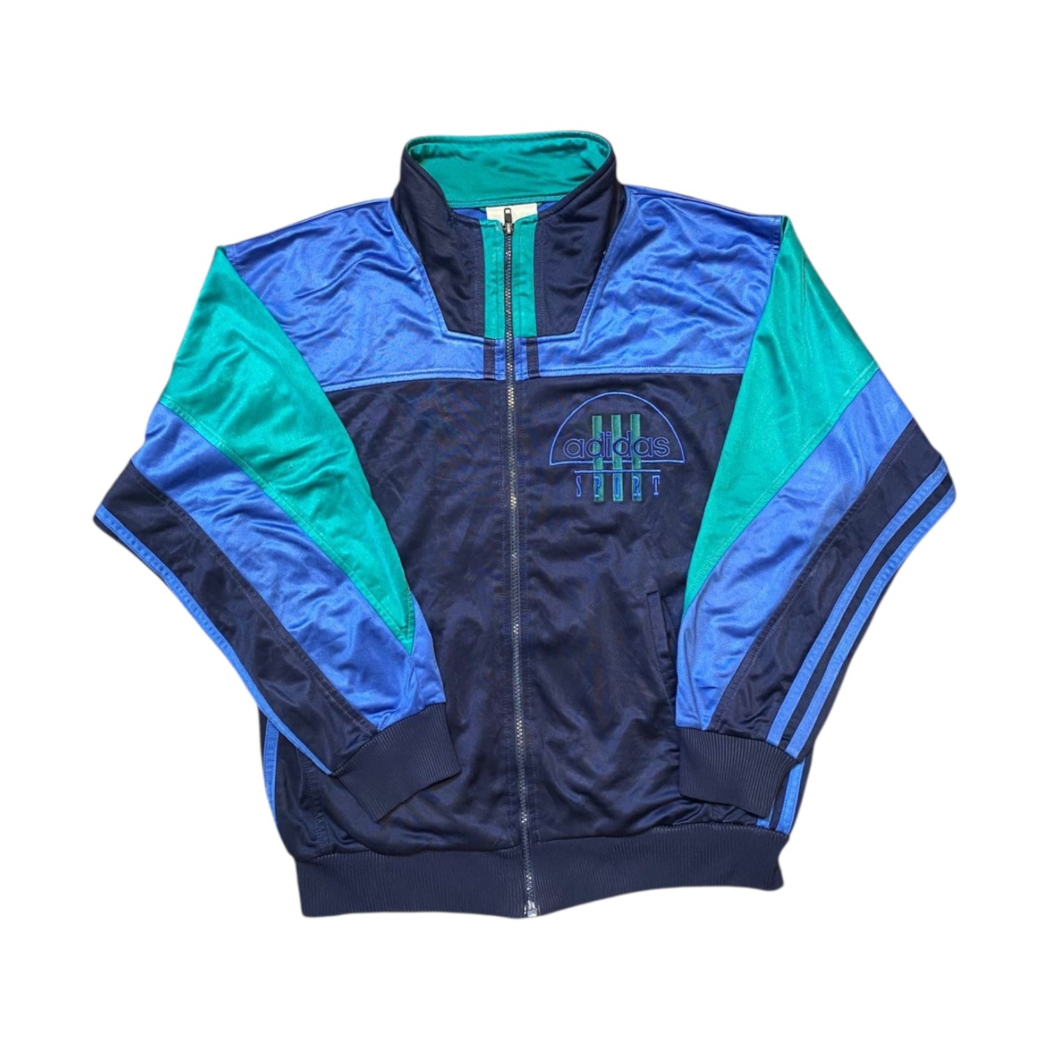 Channeling classic athletic energy, this Adidas Sport windbreaker combines color-blocked panels in green, black, and blue for a bold retro vibe. Lightweight and versatile, it’s perfect for transitional weather or layering over sportswear.