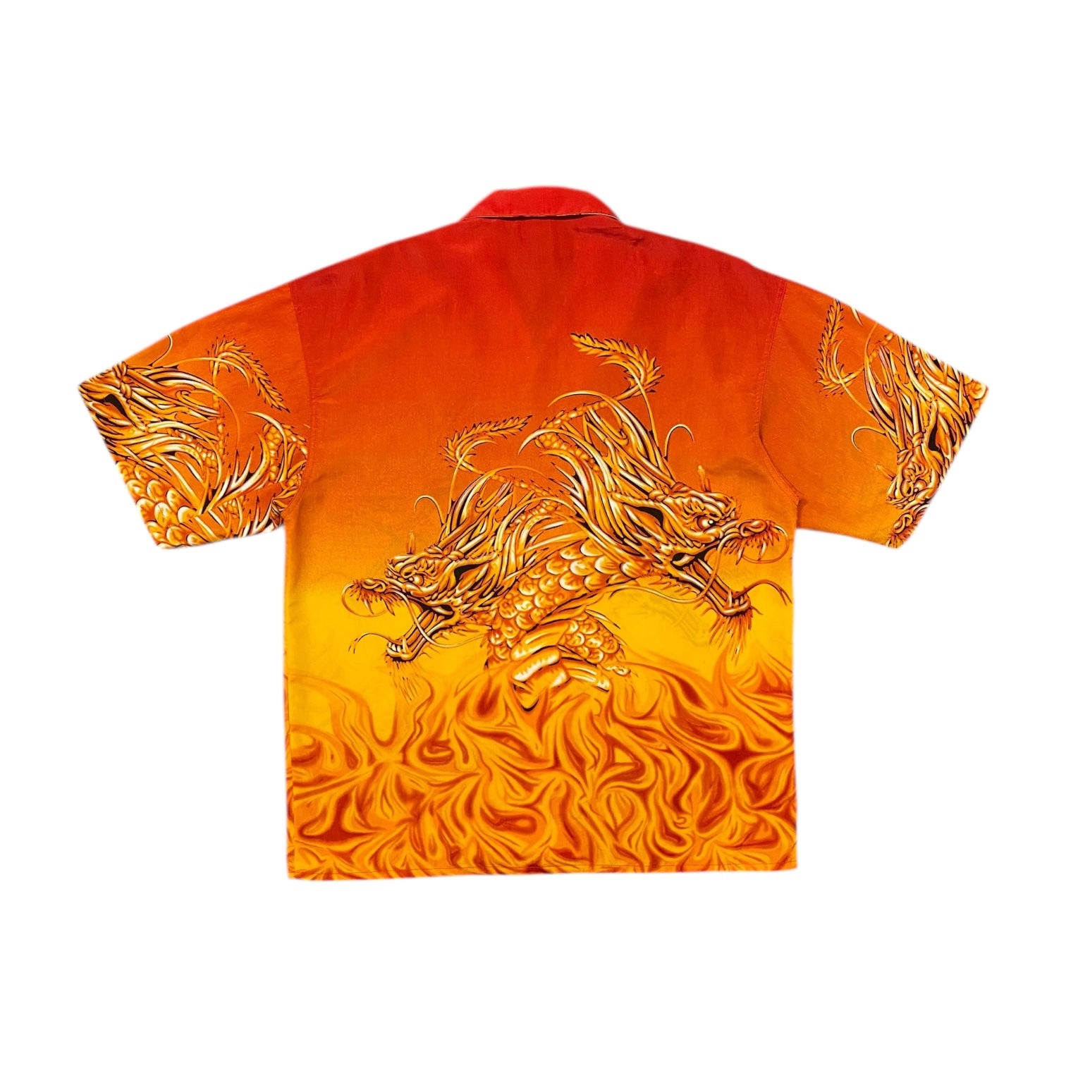 Infused with bold energy, this BAM Dragon & Fire graphic button-up T-shirt makes a striking statement with its vibrant mythical design. The relaxed fit and button-up style merge streetwear cool with a touch of fantasy flair.