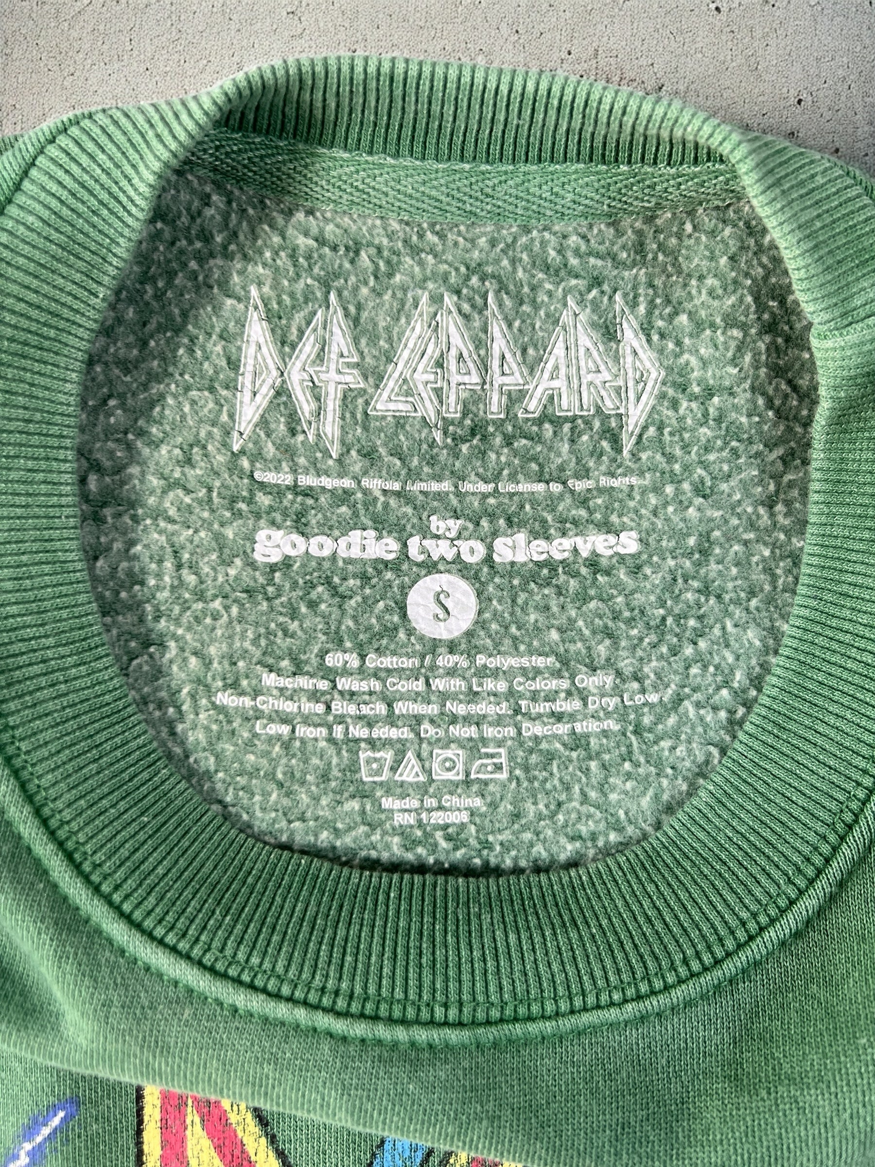 Def Leppard “Love Bite Lightning” Sweatshirt — a vintage band piece featuring bold graphics and classic rock appeal. Soft cotton blend for comfortable everyday wear.