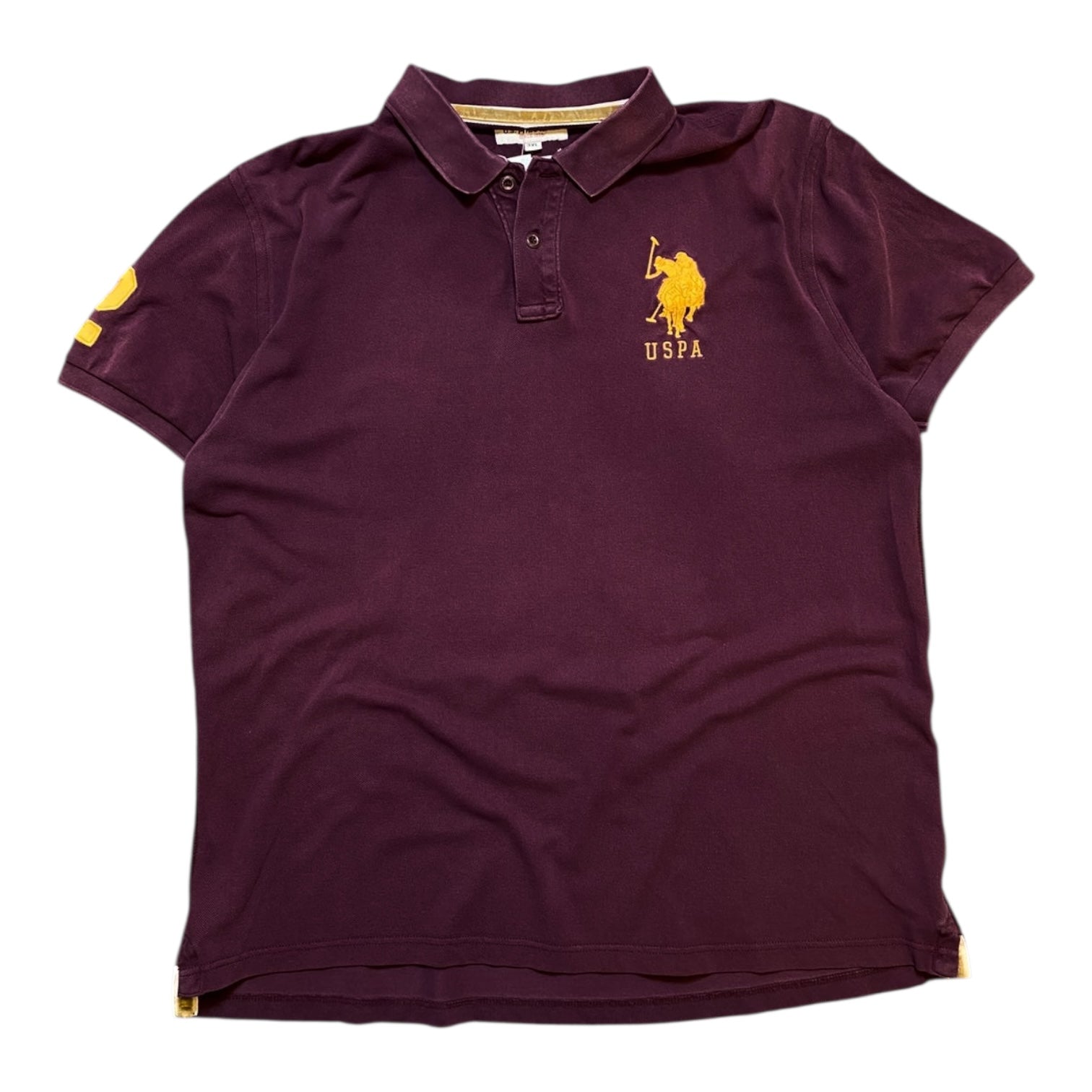 Sporty and versatile, this U.S. Polo Association maroon collared T-shirt features classic polo styling with a bold “2” patch on the sleeve for added detail.