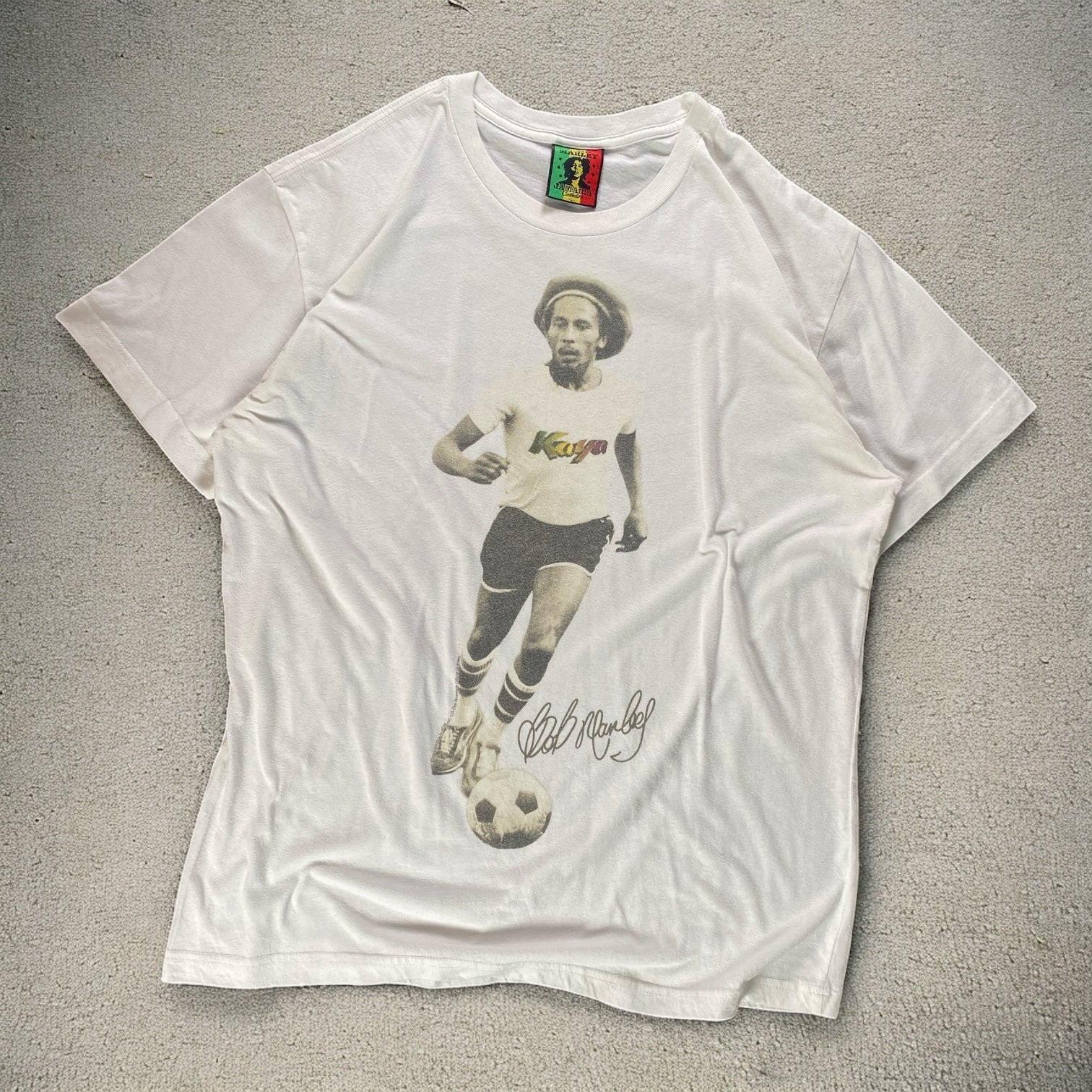 Bob Marley Kaya White T-shirt — a vintage band tee honoring the reggae legend. Featuring artwork inspired by his iconic Kaya album, this piece carries timeless music culture and laid-back style.