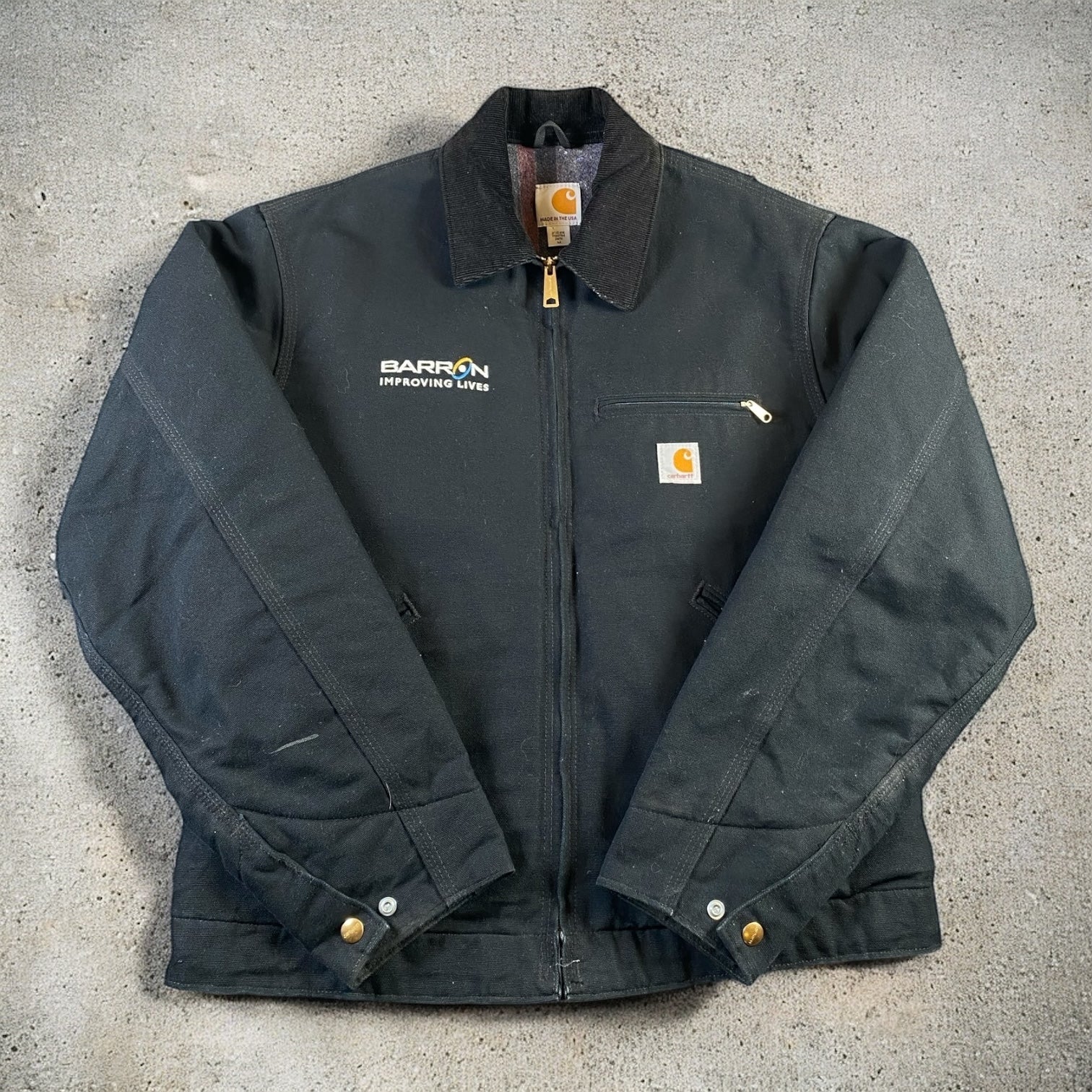 Carhartt Black Detroit Jacket Barron Improving Lives — rugged, durable, and streetwear-ready. Perfect for casual wear or light outdoor activities.