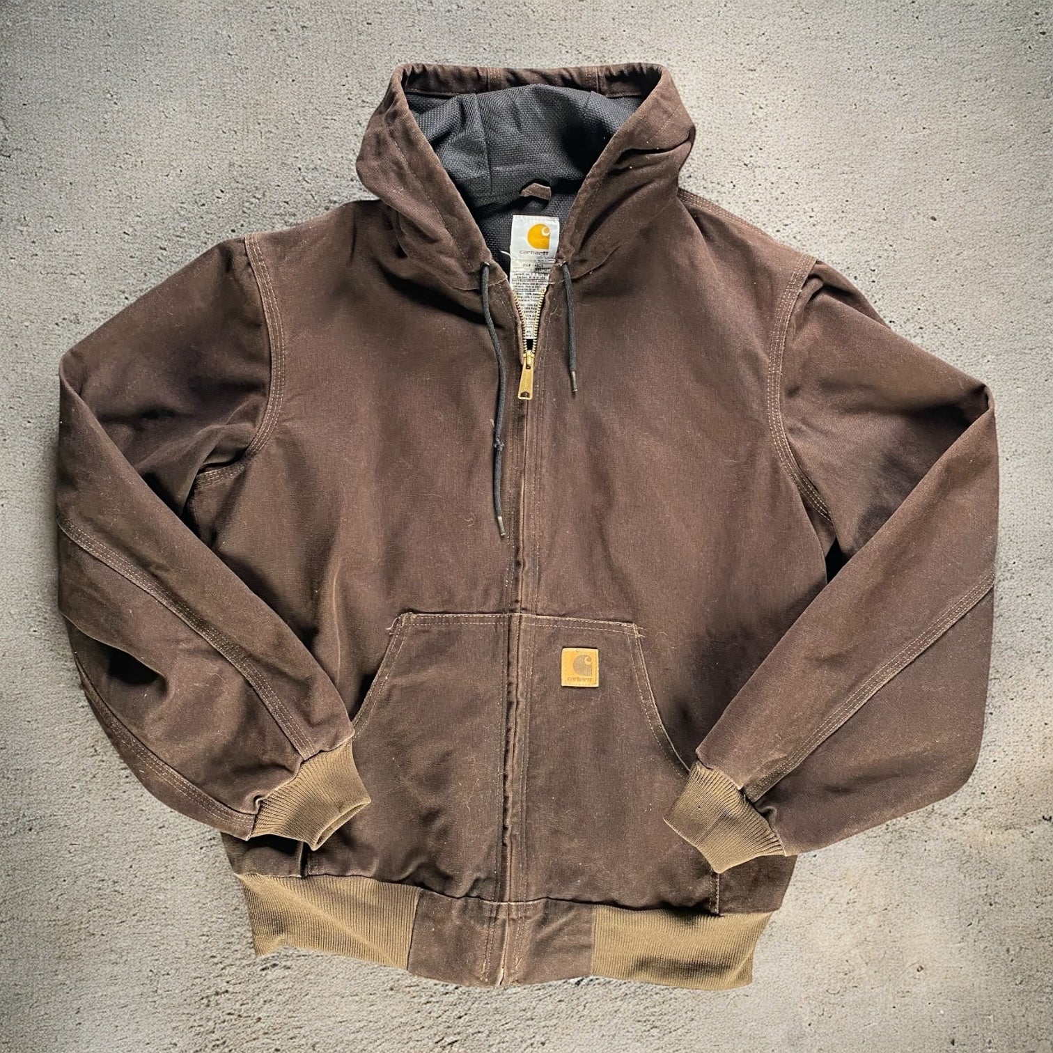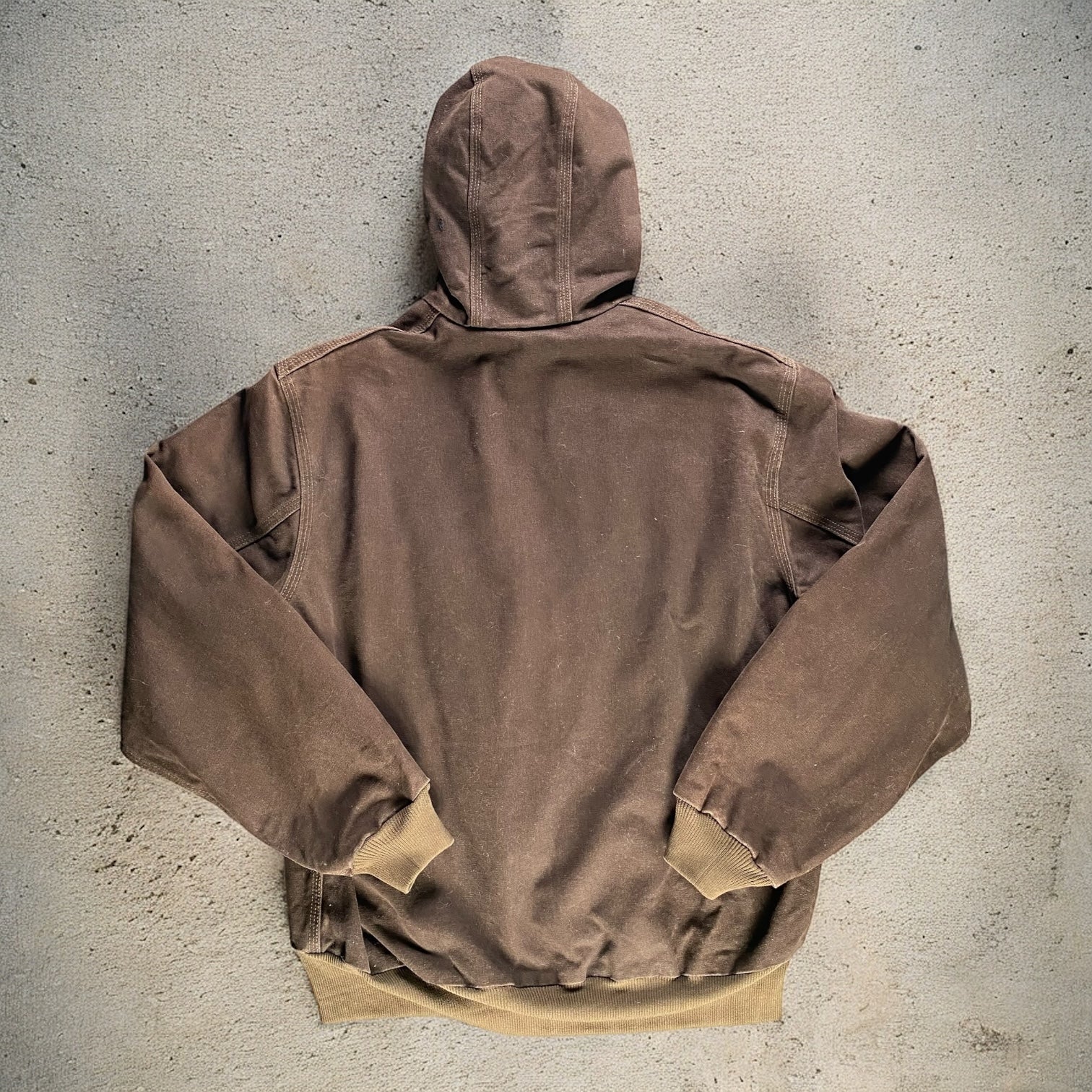 Carhartt Hooded Work Jacket in dark brown — a rugged, classic workwear piece with a cozy hood and durable construction, ideal for layering.