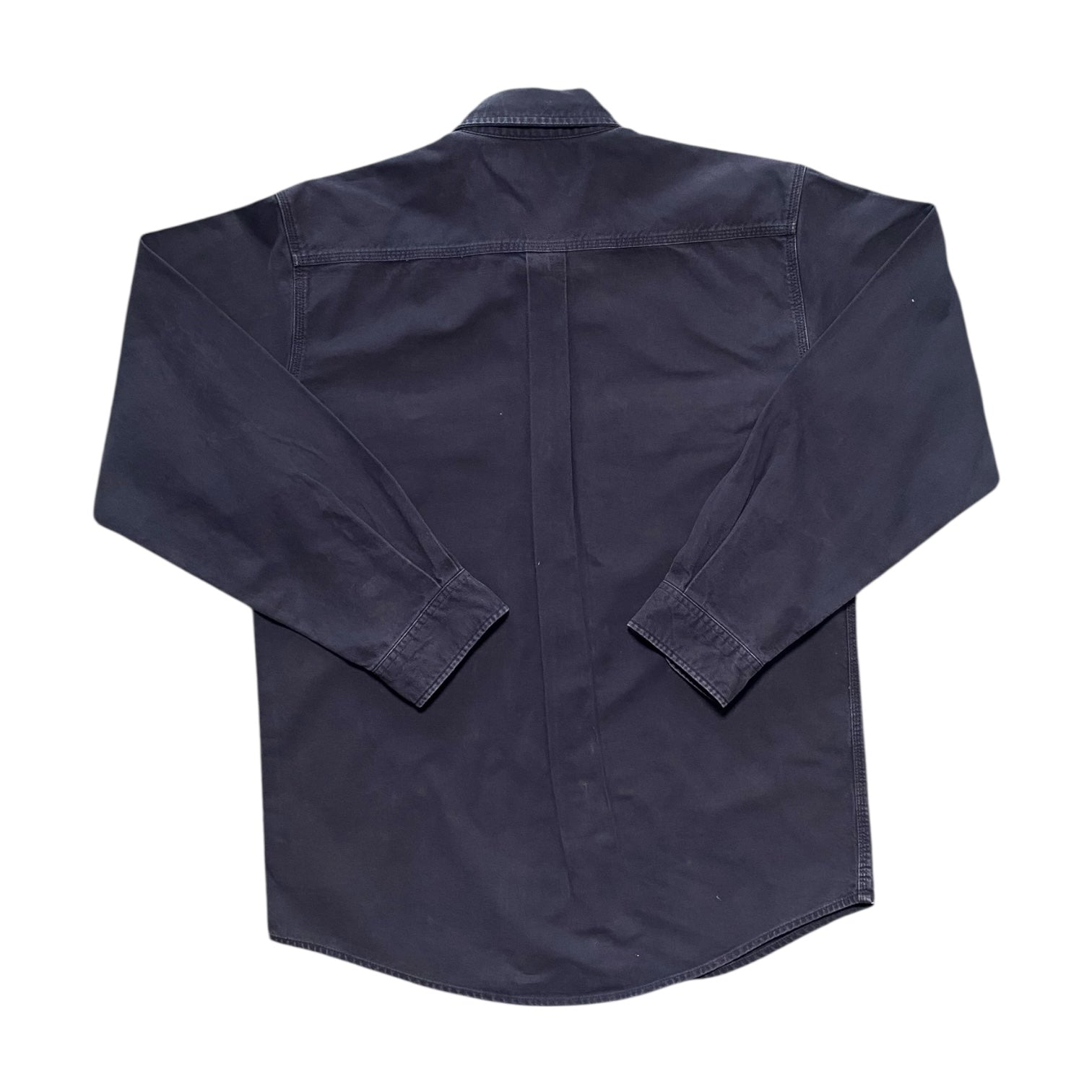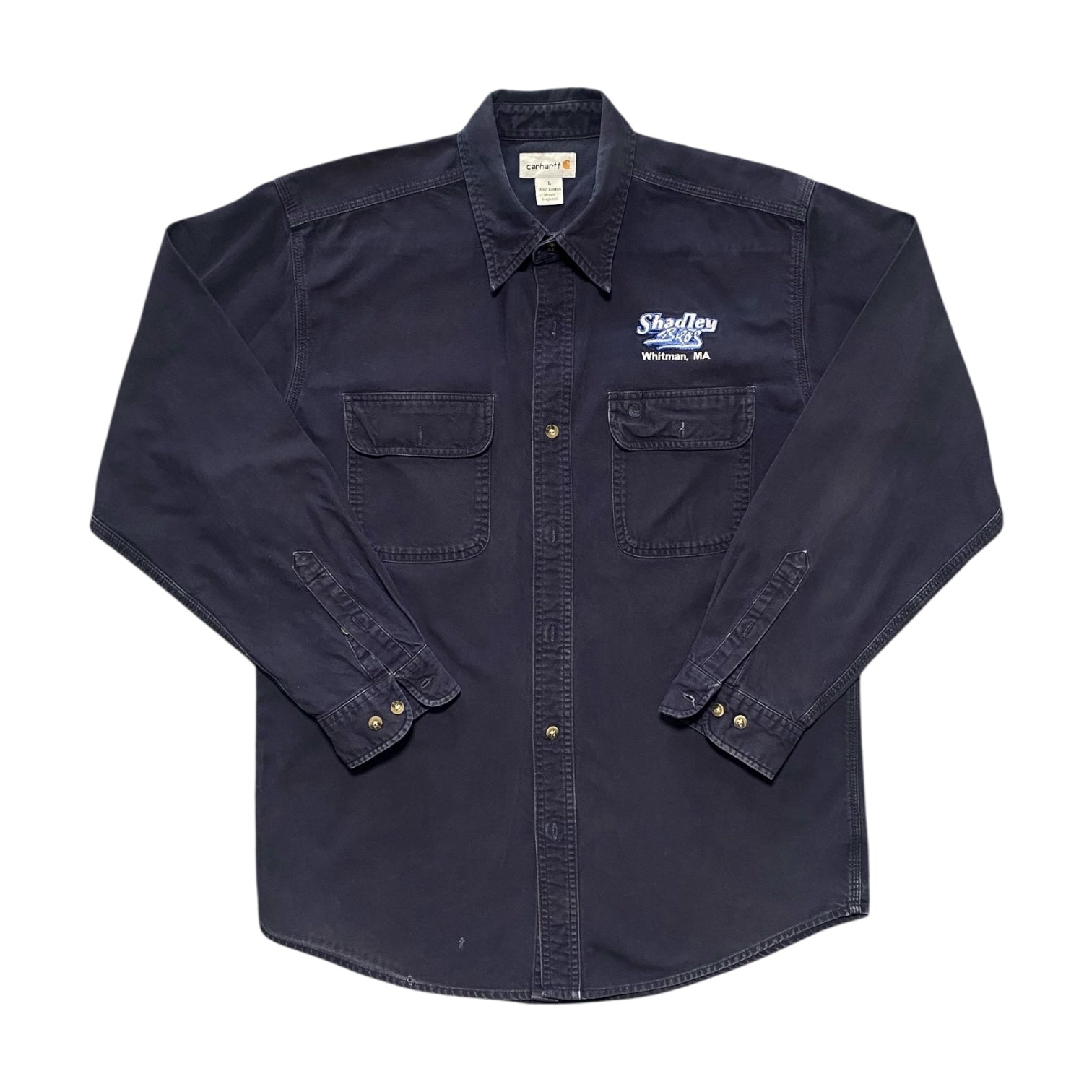 Durable Carhartt Shadely navy long sleeve button-up shirt with a rugged workwear style.