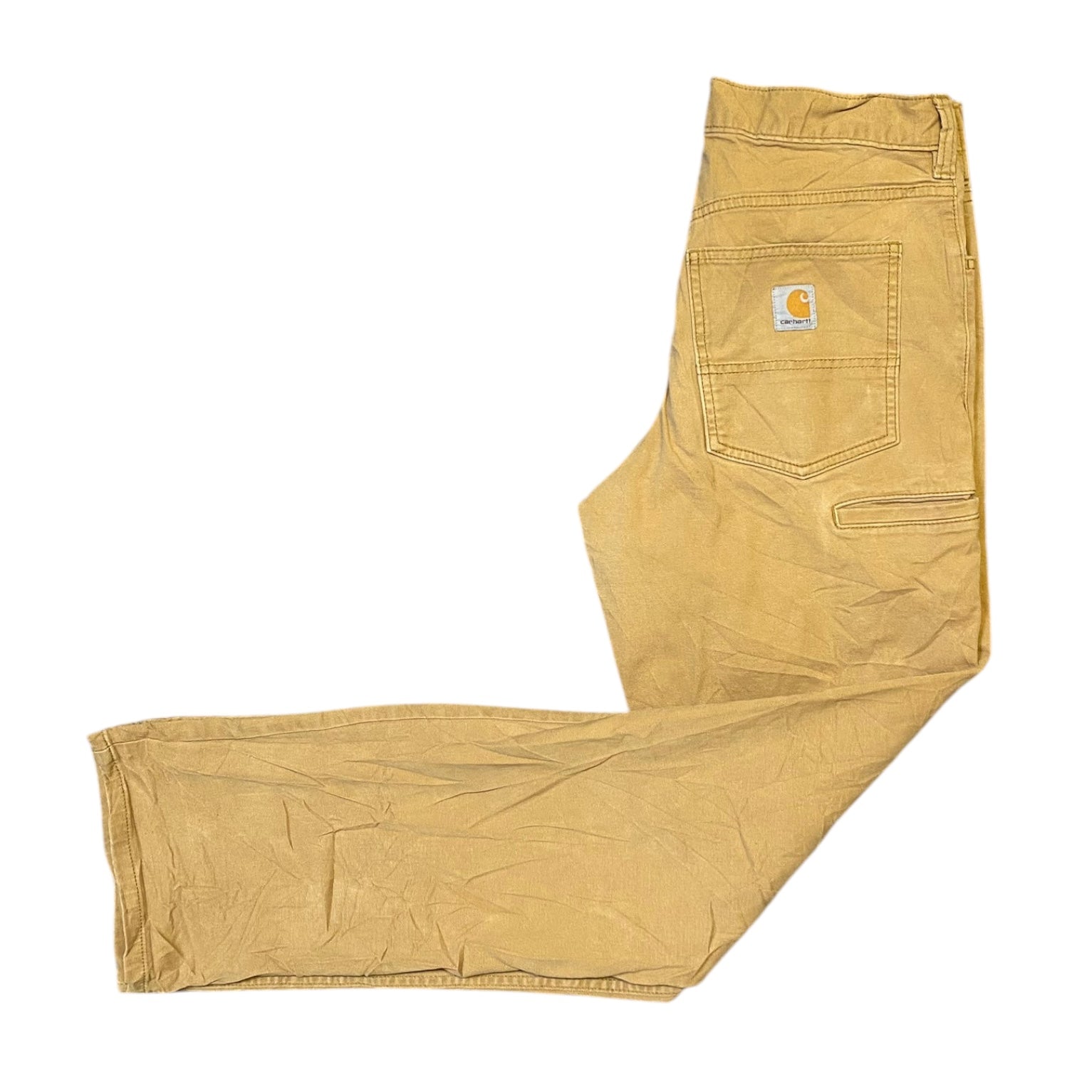 These tan Carhartt pants are lived-in and unapologetically rugged. Marked by heavy distressing and major rips throughout, they carry the kind of worn-in energy that tells stories. A statement piece for those who favor texture, character, and a tougher silhouette.