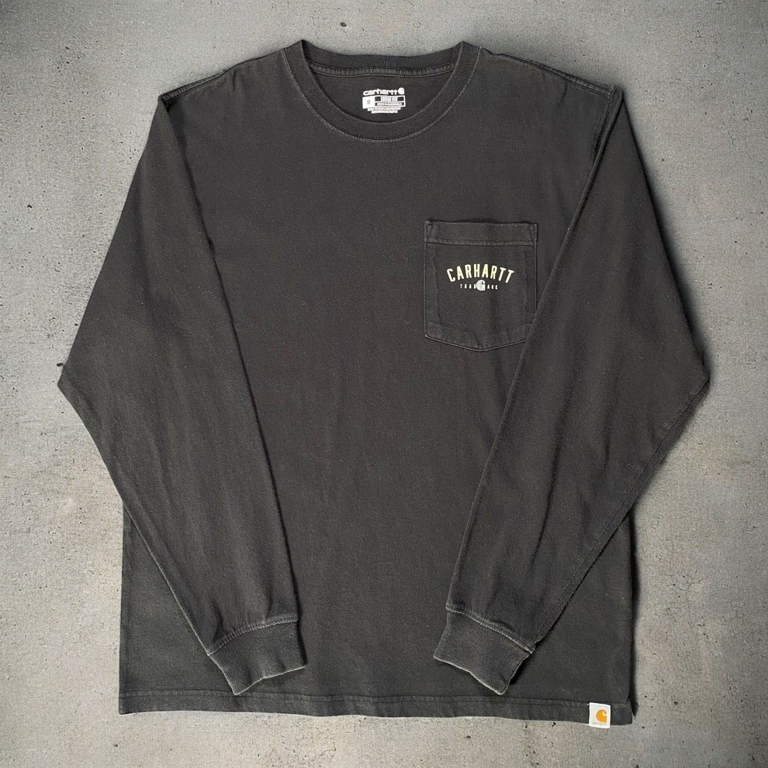 Carhartt Trademark Black Long Sleeve Loose Fit T-shirt featuring classic workwear-inspired design with a relaxed, streetwear-ready look. Perfect for casual layering or everyday wear.