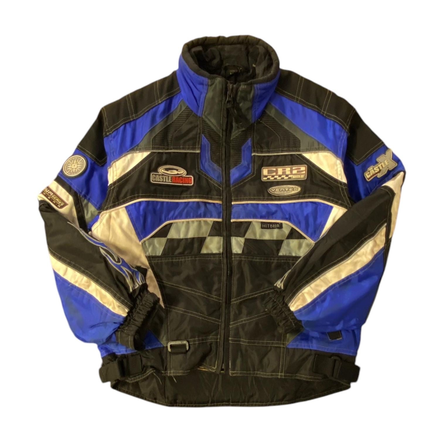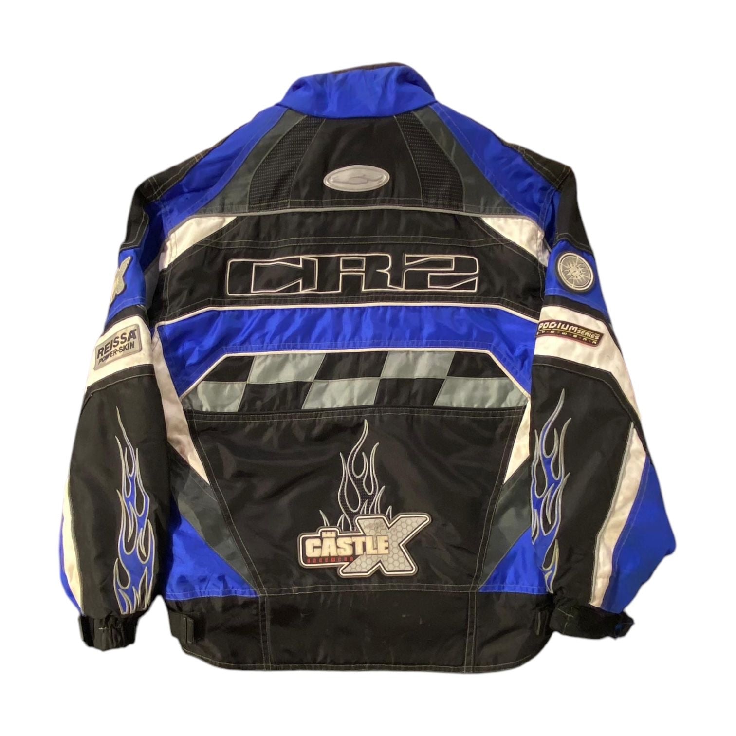 The Castle Racing CR2 Series 07 Racing Jacket is a bold and stylish piece for young motorsport enthusiasts. Designed with vibrant Castle Racing branding, this jacket embodies the thrill and excitement of racing. With a sleek, athletic fit, it’s perfect for kids who want to show off their racing spirit. In kids' size, this jacket is both functional and cool, ideal for a young fan of the sport. The jacket shows slight discoloration and wear, adding character to its vintage look, but it still maintains its vibrant colors and high-quality construction.