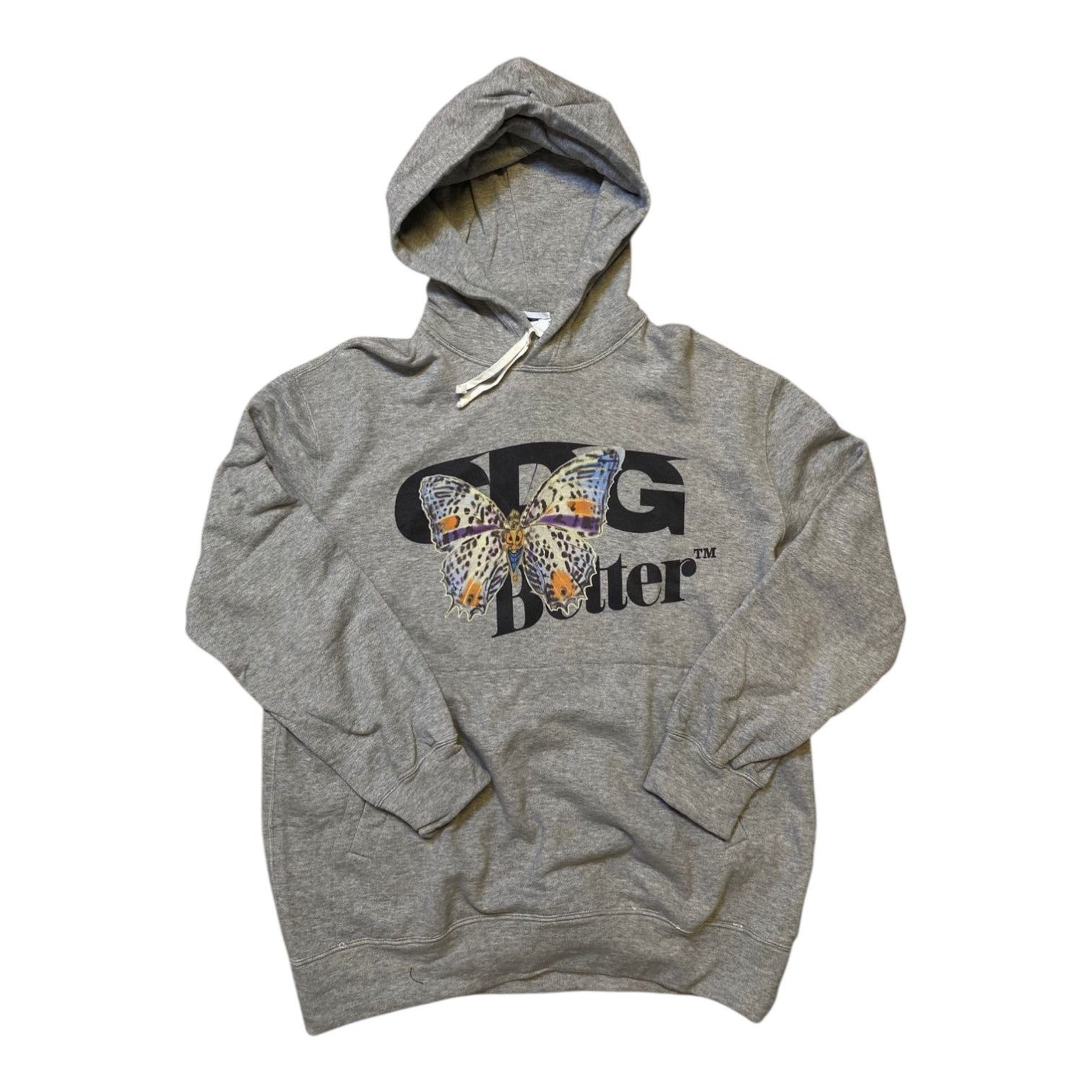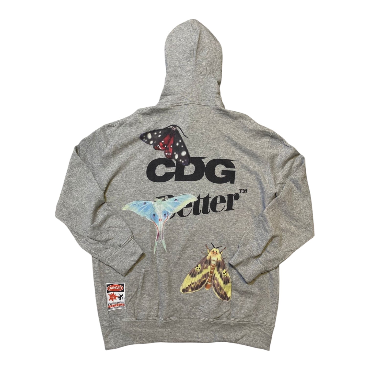 Subtle yet distinct, this CDG Better Butterfly grey hoodie blends minimalist design with a touch of playful charm. The soft grey tone and signature butterfly graphic make it a versatile piece that elevates casual streetwear with a refined edge.