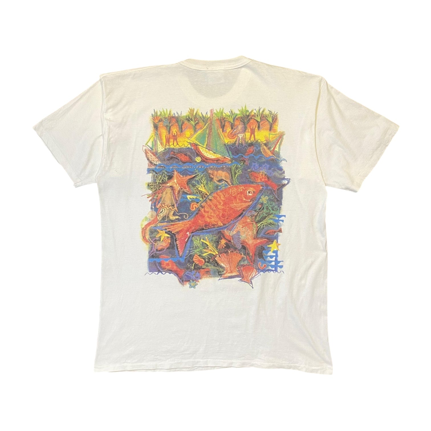 An artistic staple with a unique twist, this Cream Tea London “Deep Sea Harvest” white T-shirt features striking graphic detail and a relaxed silhouette. Slight discoloring lends a gently worn character, perfect for those who appreciate pieces with a story.