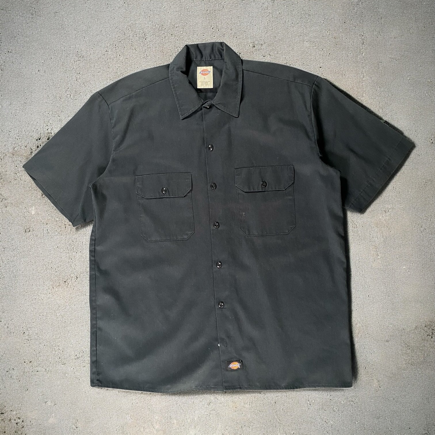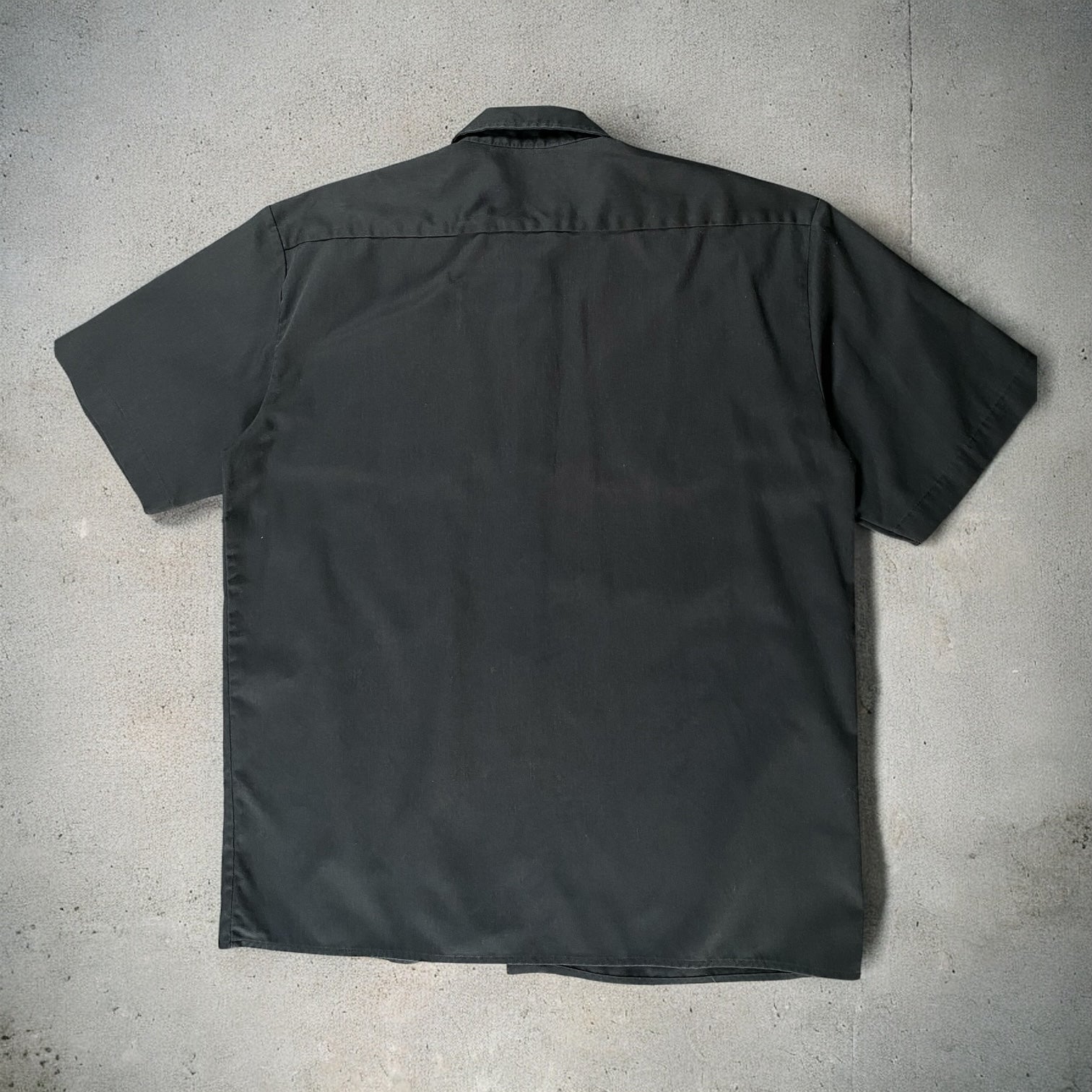 Classic black Dickies button-up shirt with a large fit, offering timeless style and comfortable wear.