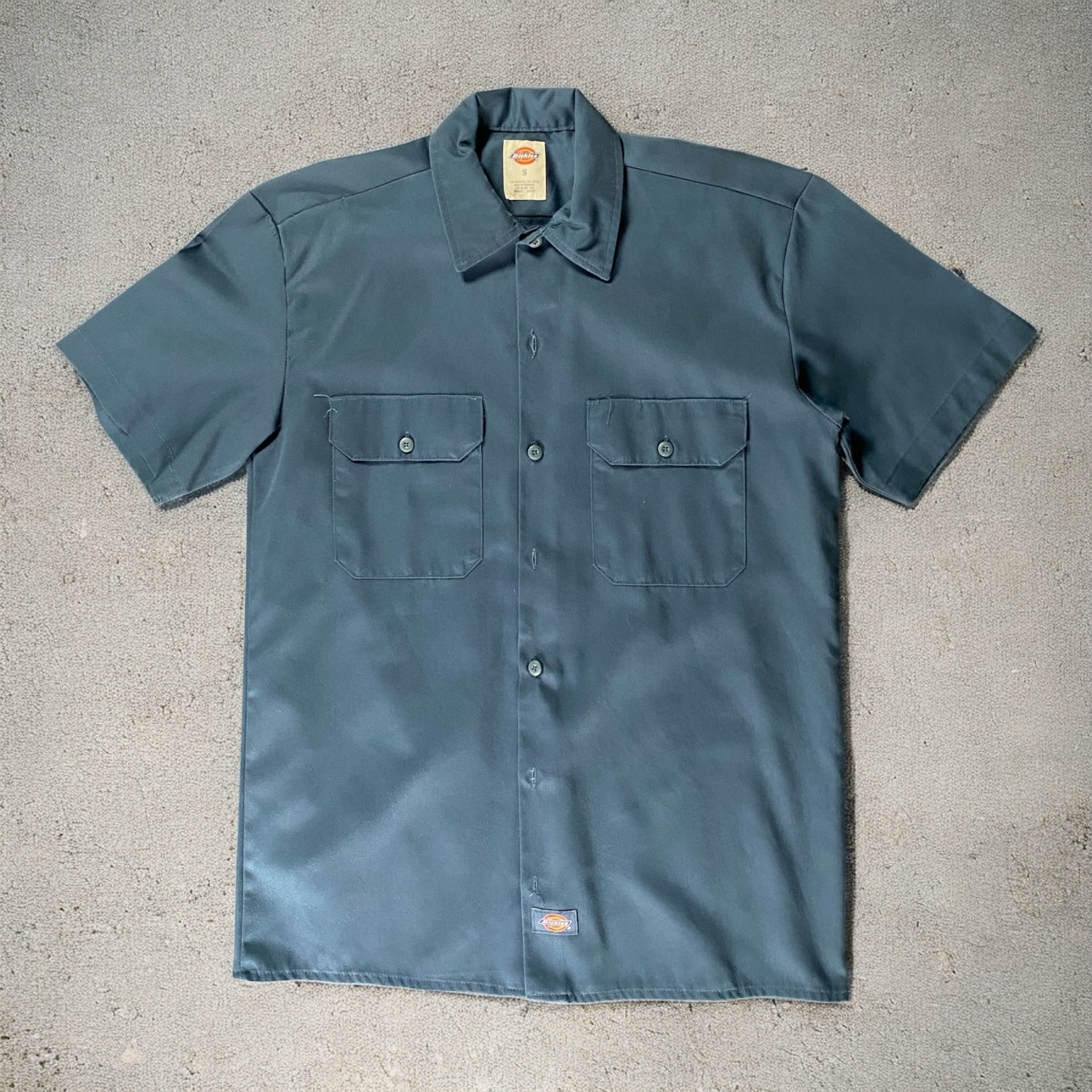 Classic navy blue Dickies shirt offering a comfortable small fit and timeless casual style.