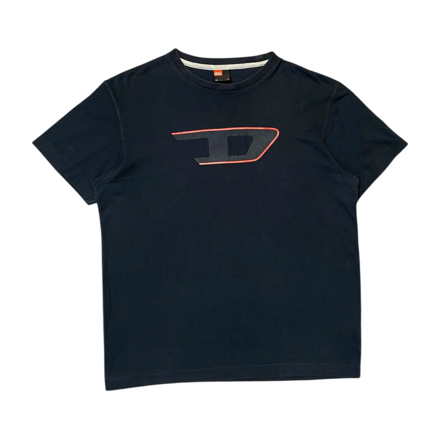 Minimalist and versatile, this Diesel black T-shirt features understated branding and a clean silhouette. Though labeled a large, it fits closer to a small, making it ideal for a more tailored look.