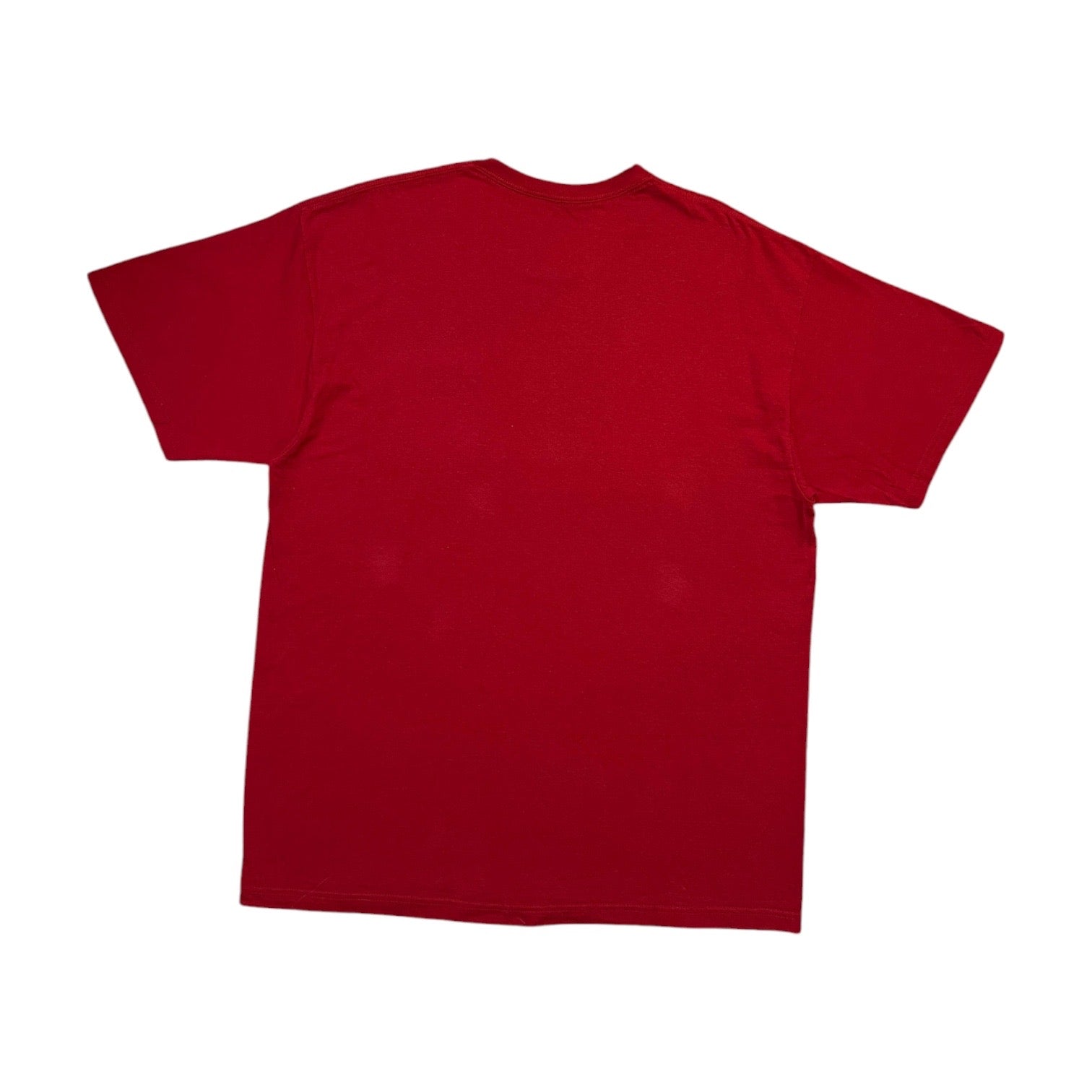 Style with neutral cargos or vintage denim to let the red stand out. Works well layered under a light overshirt or worn solo with sneakers.