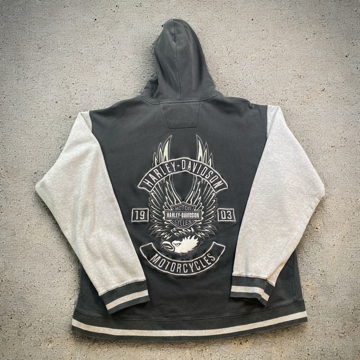Harley Davidson Black & Grey Hoodie — bold, comfortable, and iconic. A streetwear-ready hoodie featuring classic Harley Davidson styling, perfect for casual layering.