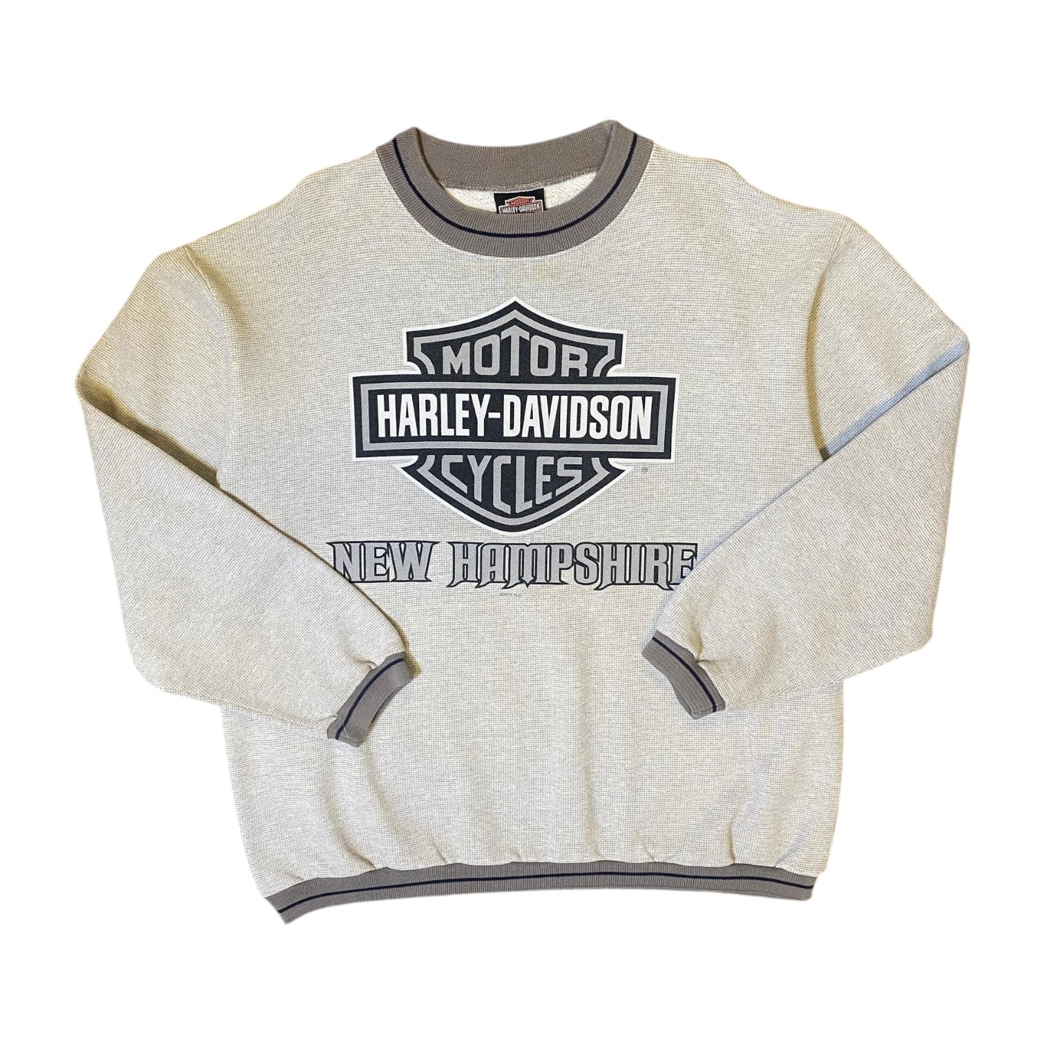 Embodying the rugged spirit of the Laconia motorcycle rally, this Harley Davidson sweater blends vintage charm with cozy comfort. The soft grey fabric is accented with bold branding, making it a versatile piece for cool rides and laid-back days.