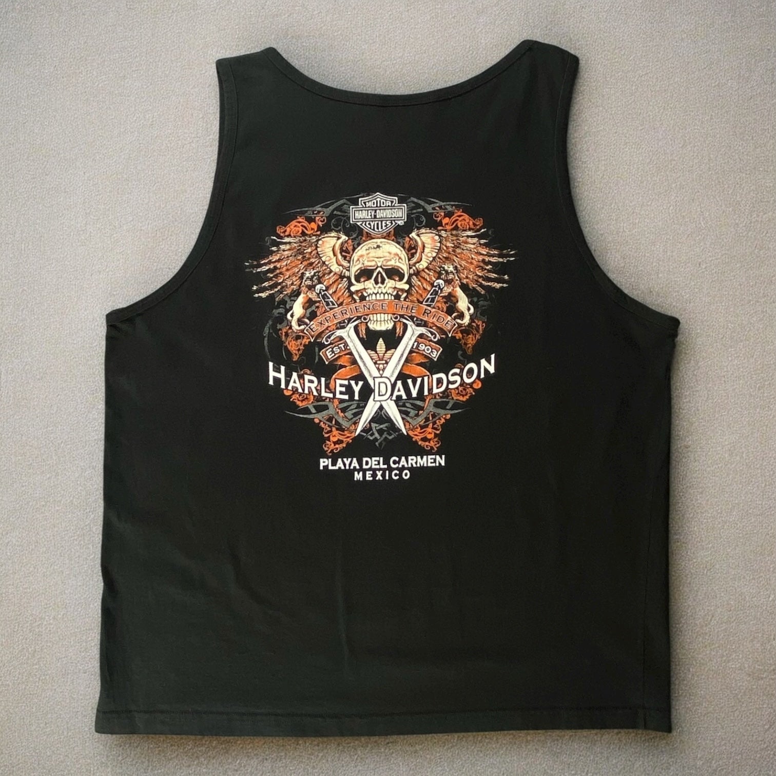 Harley Davidson Playa Del Carmen Mexico Sleeveless Tee — bold back and front logo print capturing the spirit of the open road with a tropical touch.