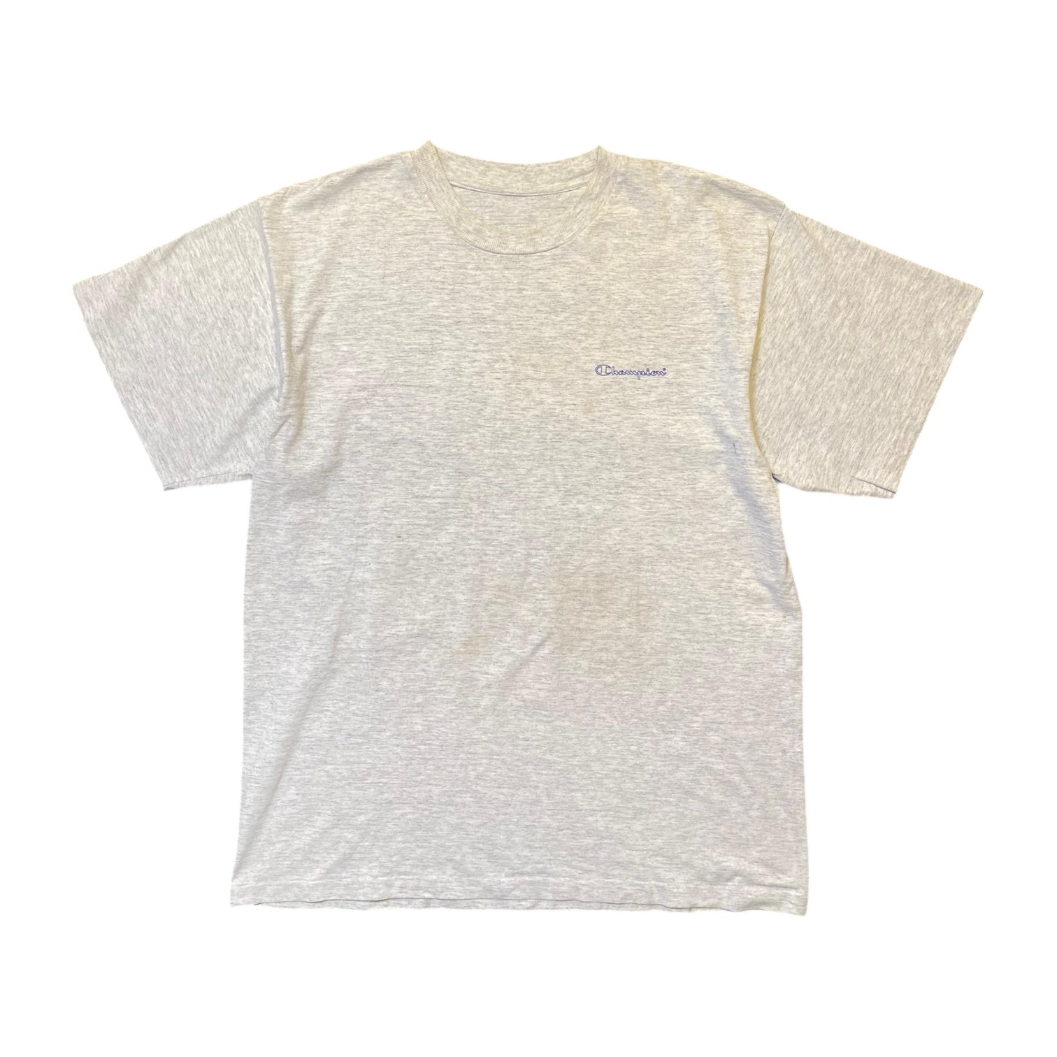 A clean, easygoing staple, this Champion light gray T-shirt delivers classic athletic style and dependable comfort. Light stains add a touch of character and authenticity, perfect for everyday wear or laid-back vintage looks.