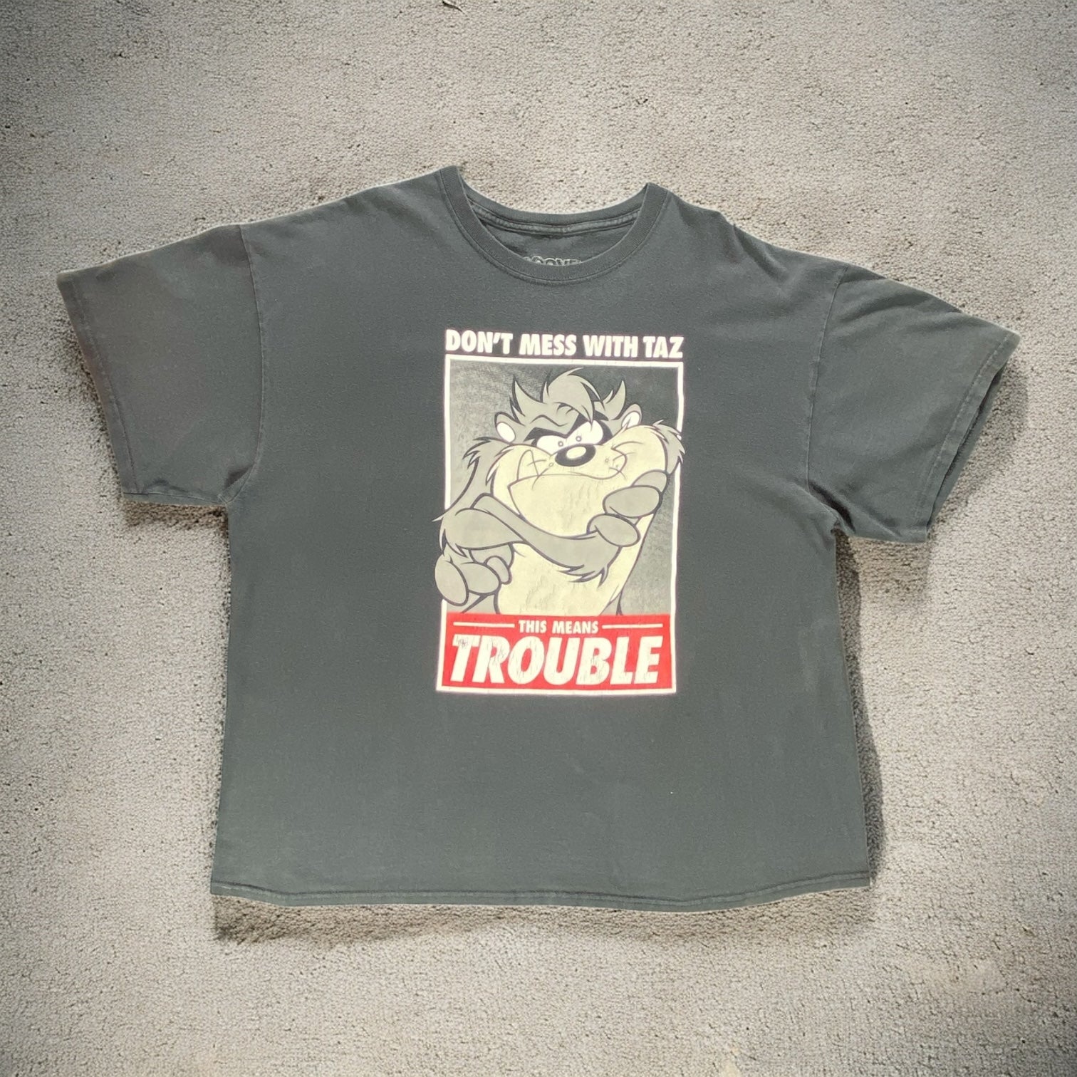 Looney Tunes Don’t Mess With Taz Black T-shirt — a nostalgic 90s graphic tee featuring the wild Tasmanian Devil. Bold, playful, and full of retro character, it’s a piece that brings cartoon attitude into streetwear.