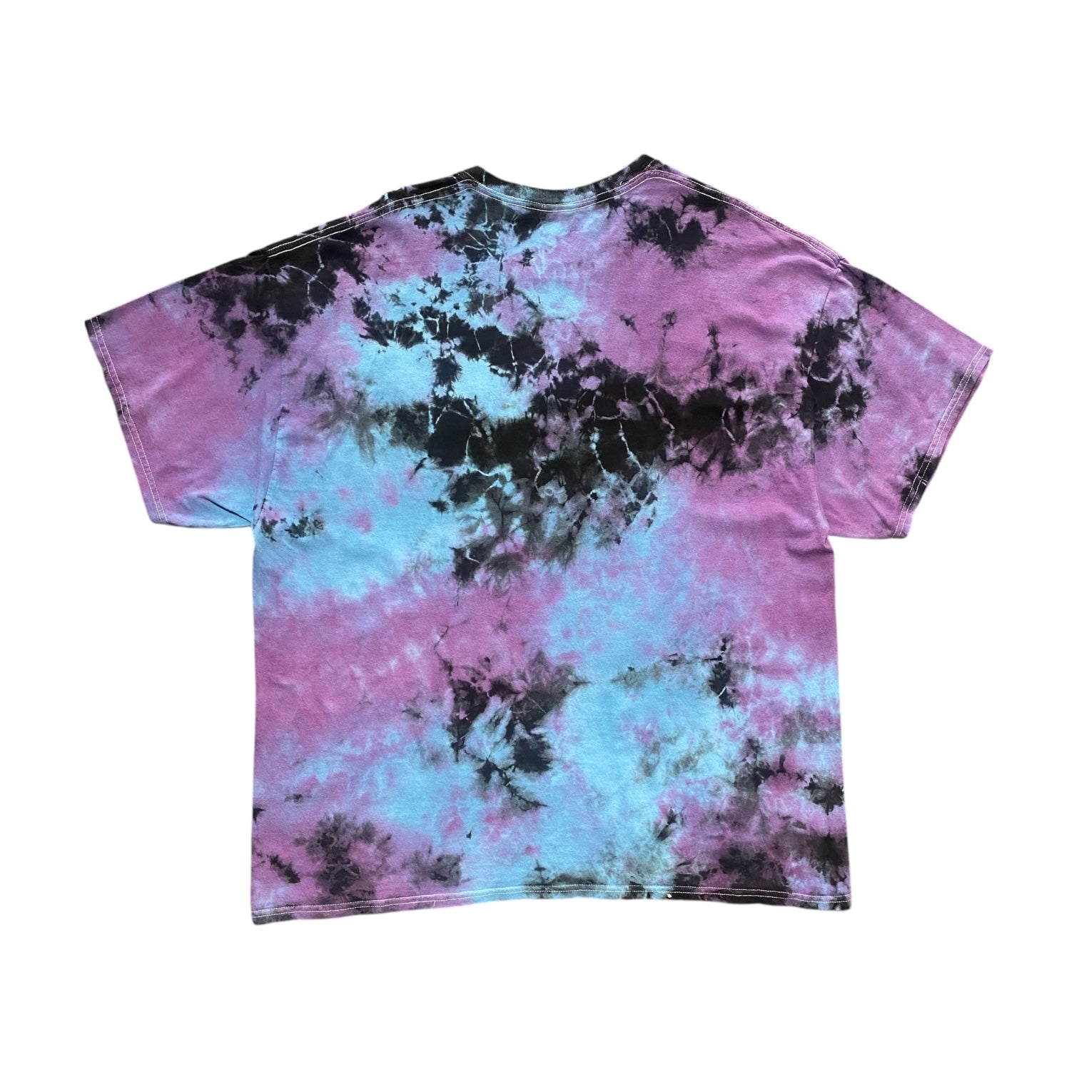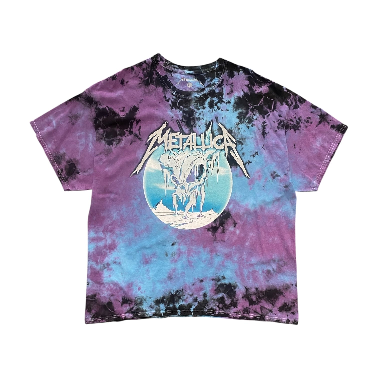 Retro Metallica tie-dye tee featuring vibrant colors and iconic band graphics for a bold vintage look.