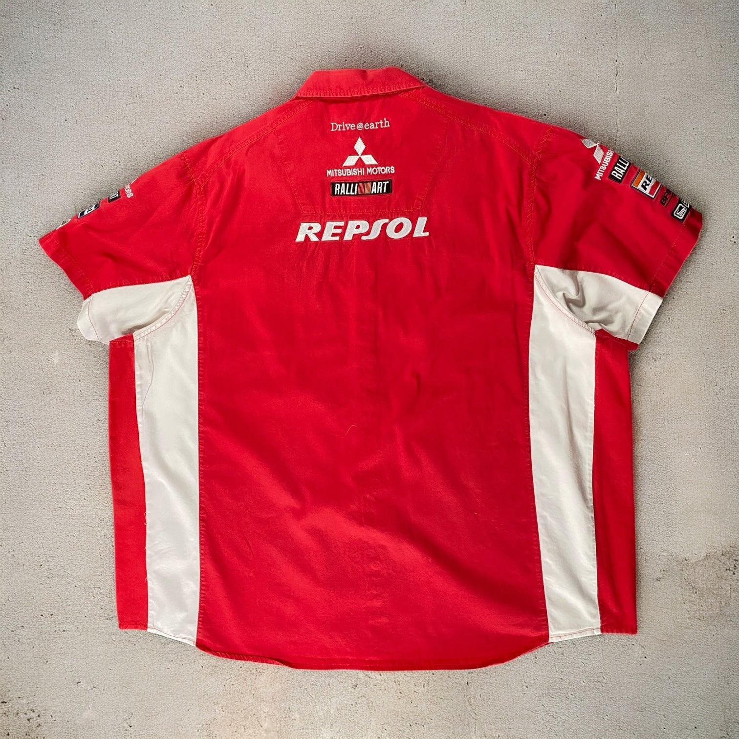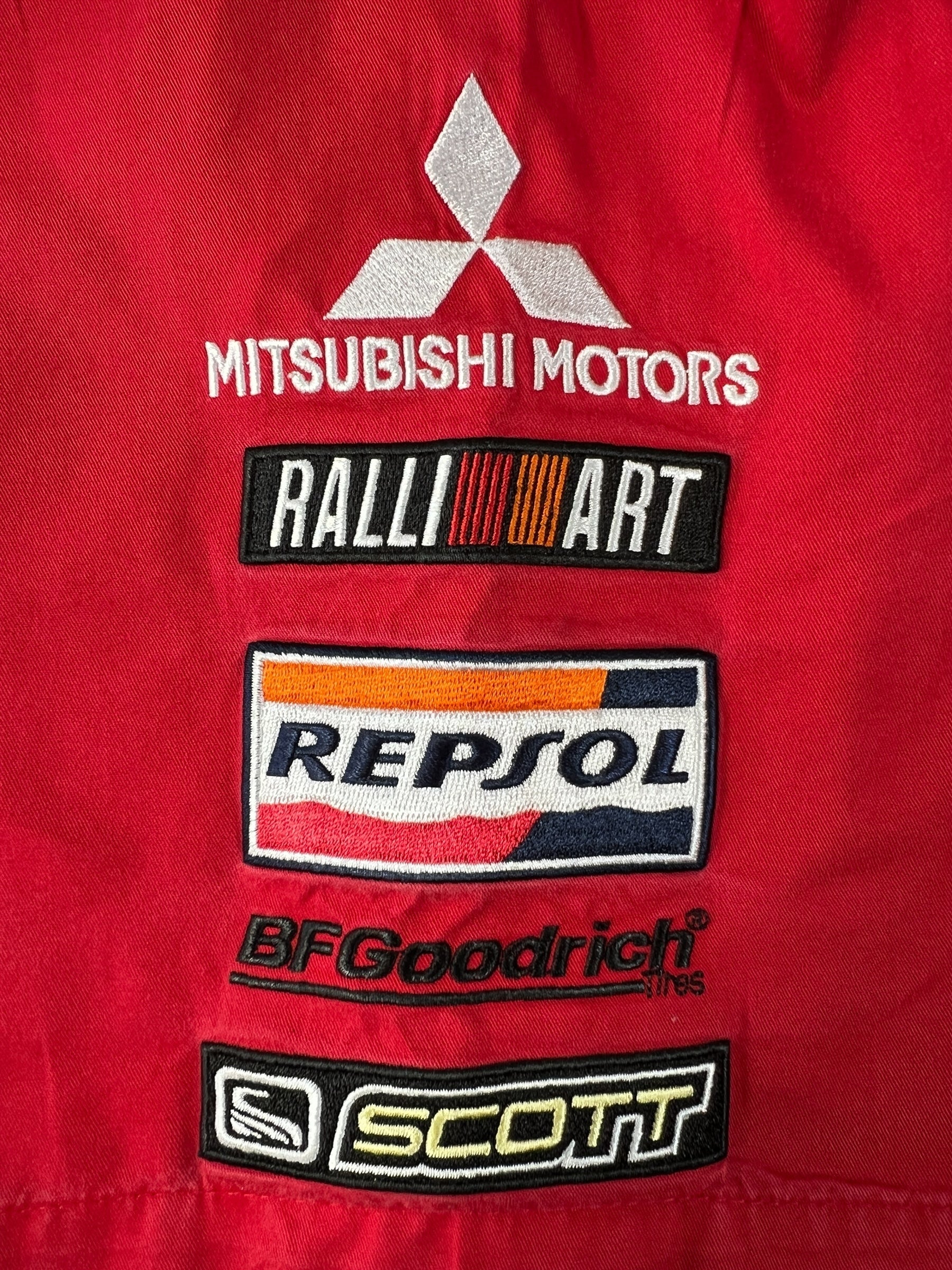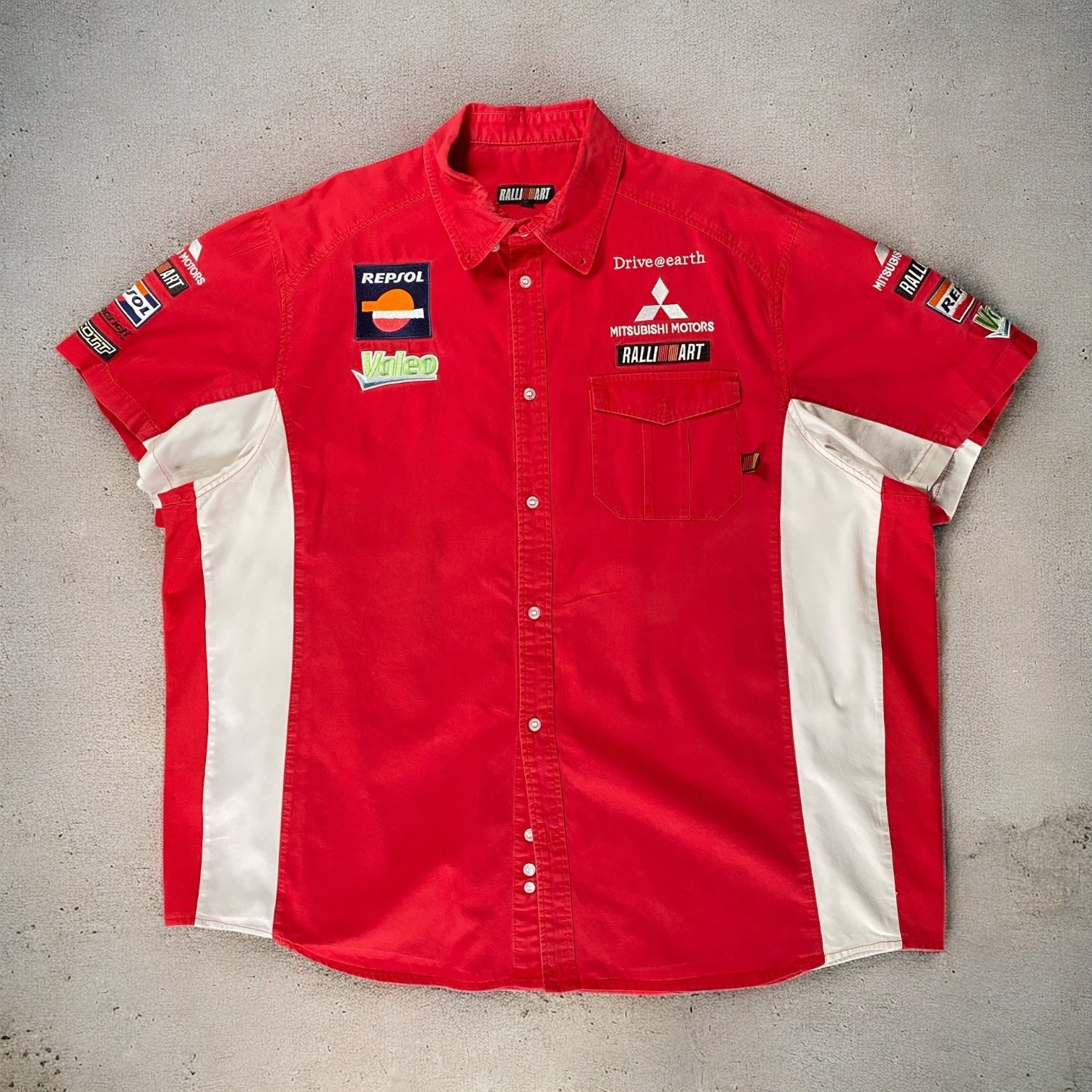 Classic Mitsubishi Ralliart racing shirt featuring bold branding, offering a relaxed oversized fit with vintage motorsport style.