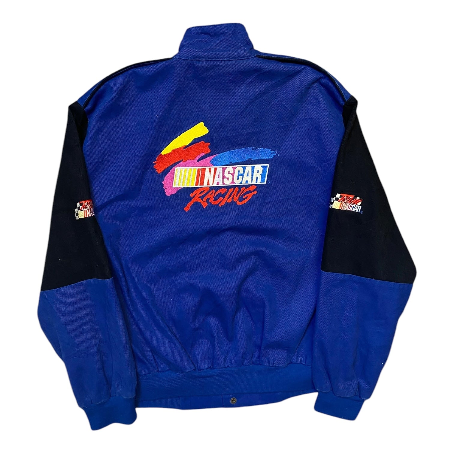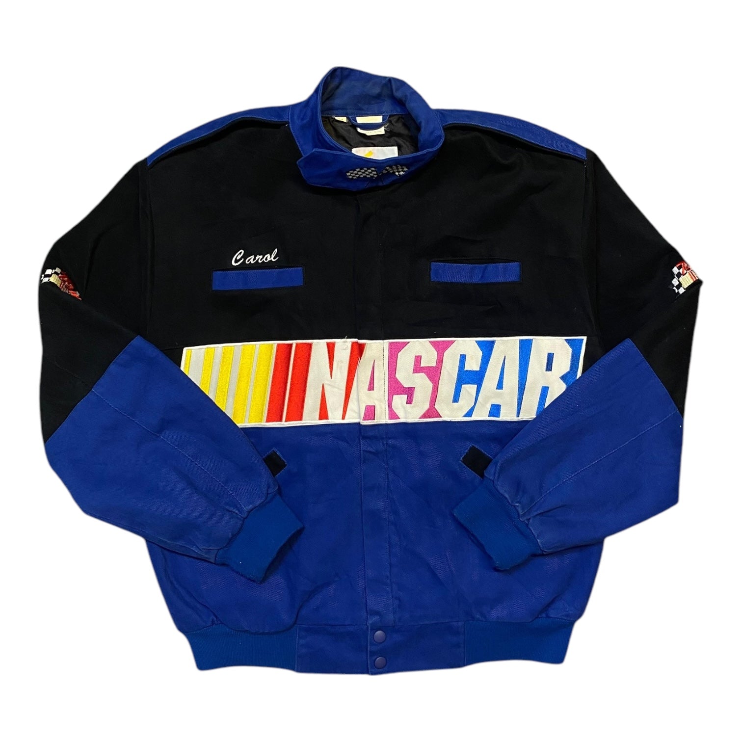 The NASCAR Black/Blue Racing Jacket delivers high-octane energy in a compact, bold silhouette. With sponsor-style embroidery and classic motorsport design cues, this jacket channels trackside flair into an everyday streetwear piece.