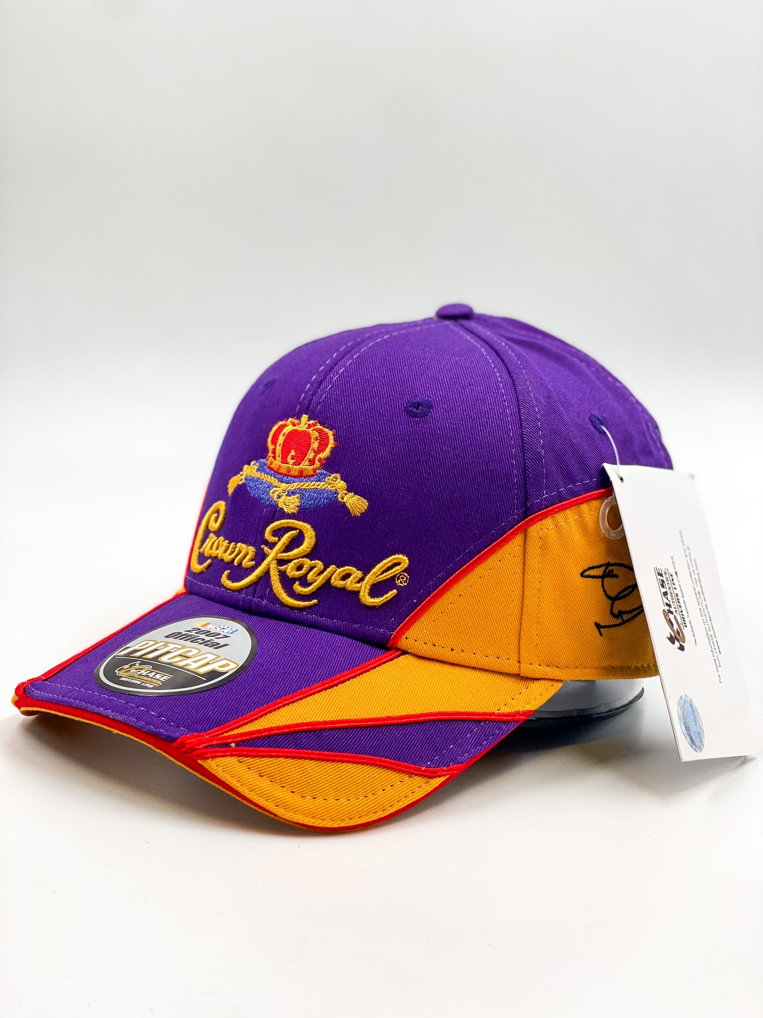Raise a toast to racing with the NASCAR Crown Royal Cap. Featuring bold Crown Royal embroidery and classic racing styling, this cap blends motorsport heritage with everyday wearability. Its structured design and quality craftsmanship make it a standout accessory for fans and streetwear enthusiasts alike.