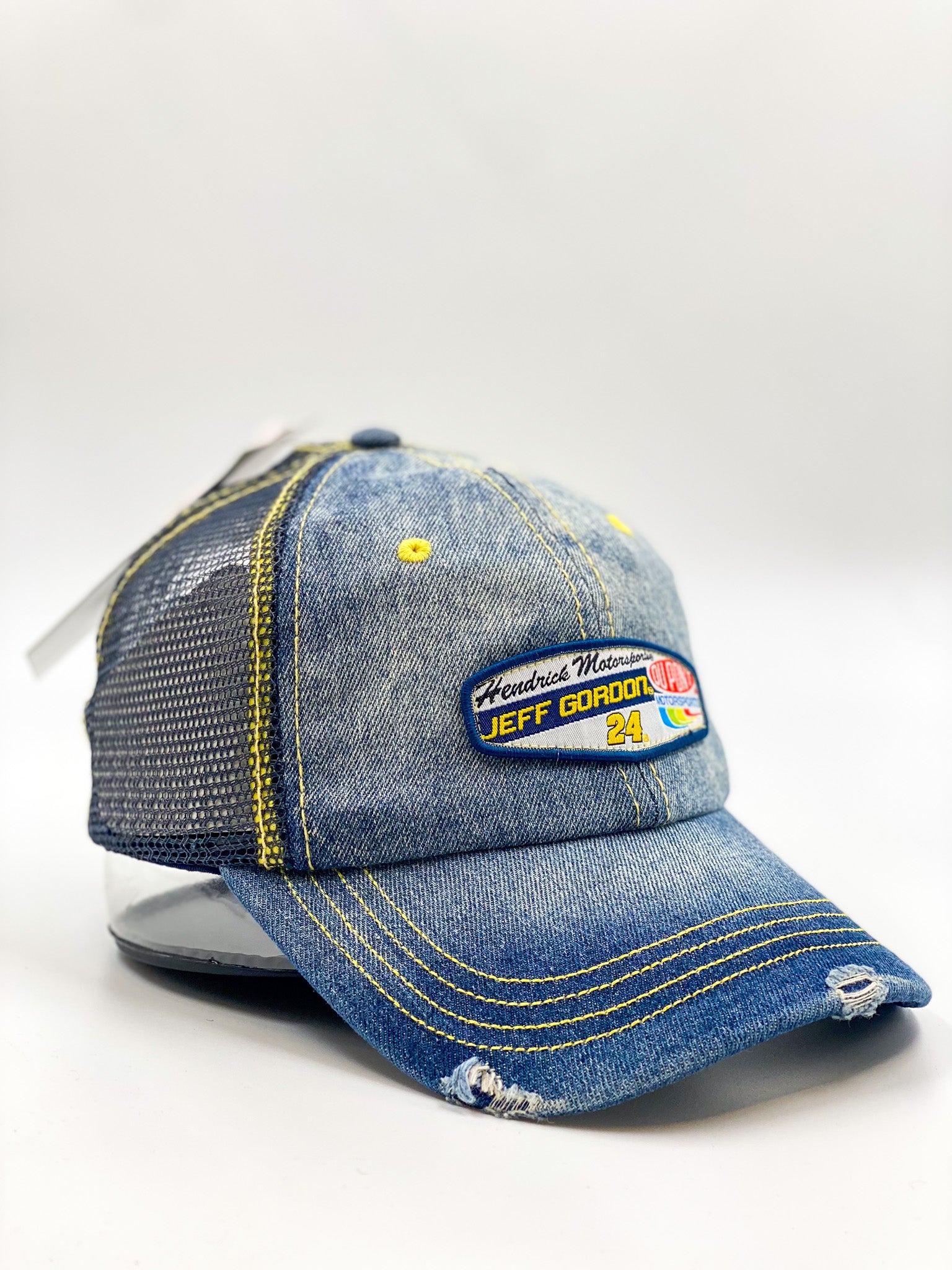 Represent the legendary Jeff Gordon with this NASCAR Hendrick Motorsports #24 Cap. Crafted from a unique combination of mesh and denim, this cap blends breathable comfort with a stylish, modern edge. Featuring the iconic #24 logo and Hendrick Motorsports branding, it's a perfect way to showcase your support for one of NASCAR's most accomplished drivers.