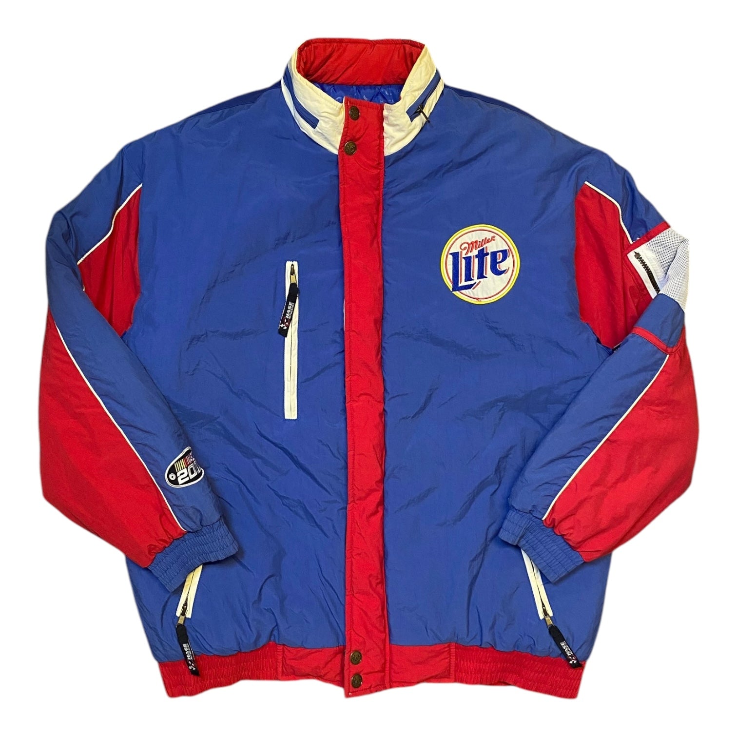 The Miller Lite Rusty Wallace Jacket is a tribute to one of NASCAR’s most iconic drivers, blending bold sponsor graphics with a heavyweight, racing-inspired build. A classic piece of motorsport nostalgia that transitions effortlessly into modern streetwear.