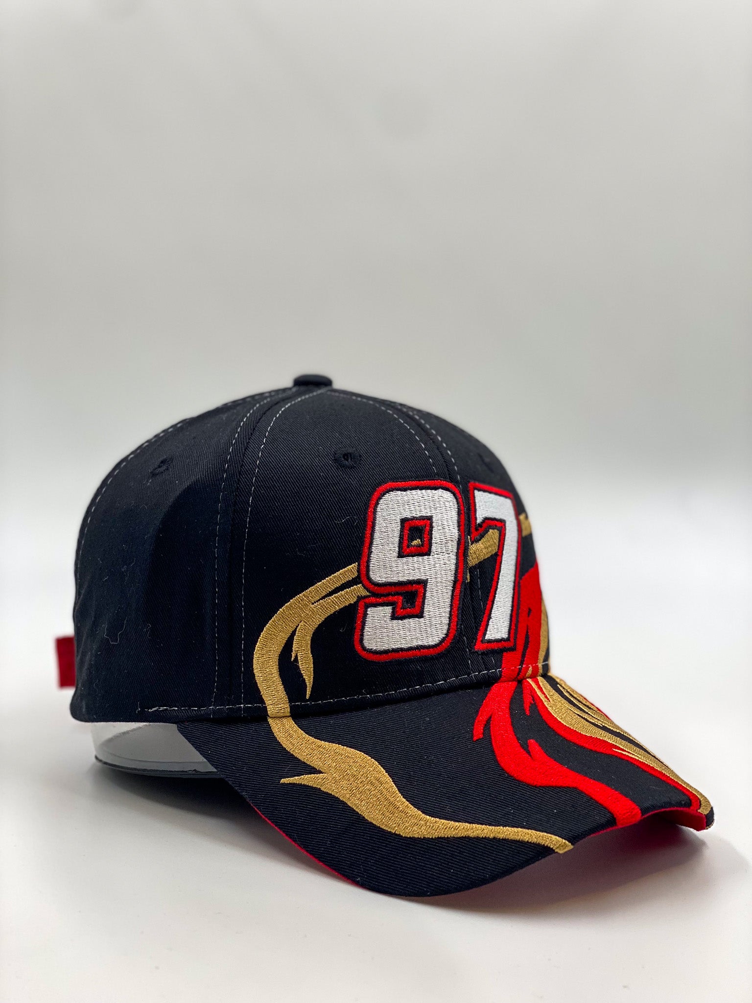 Pair with a simple racing tee or hoodie and dark denim for a cohesive fan look. Finish with casual sneakers or boots to keep the focus on the cap’s bold graphics.