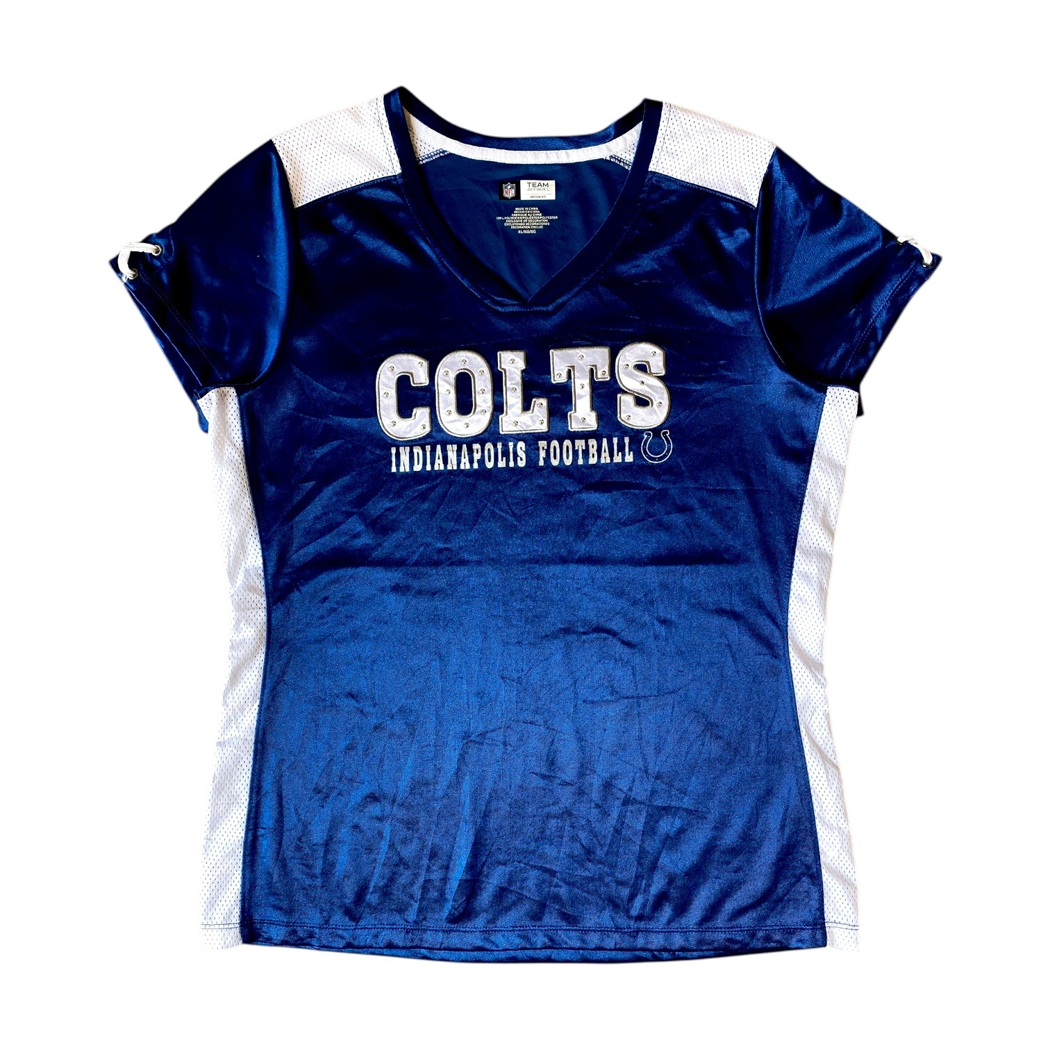 A sleek and spirited piece for fans of the Horseshoe. This women’s Indianapolis Colts jersey delivers classic NFL energy in a flattering athletic cut — ideal for game day or everyday sporty layering.