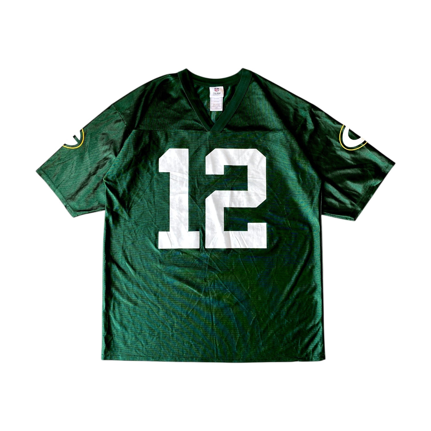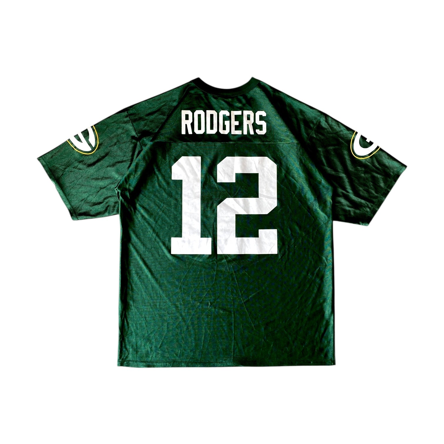 Celebrate a modern legend with this bold #12 Aaron Rodgers jersey in the classic Packers green and yellow. Built with an athletic cut and mesh body, it's made for game day energy, streetwear layering, or collector cred.