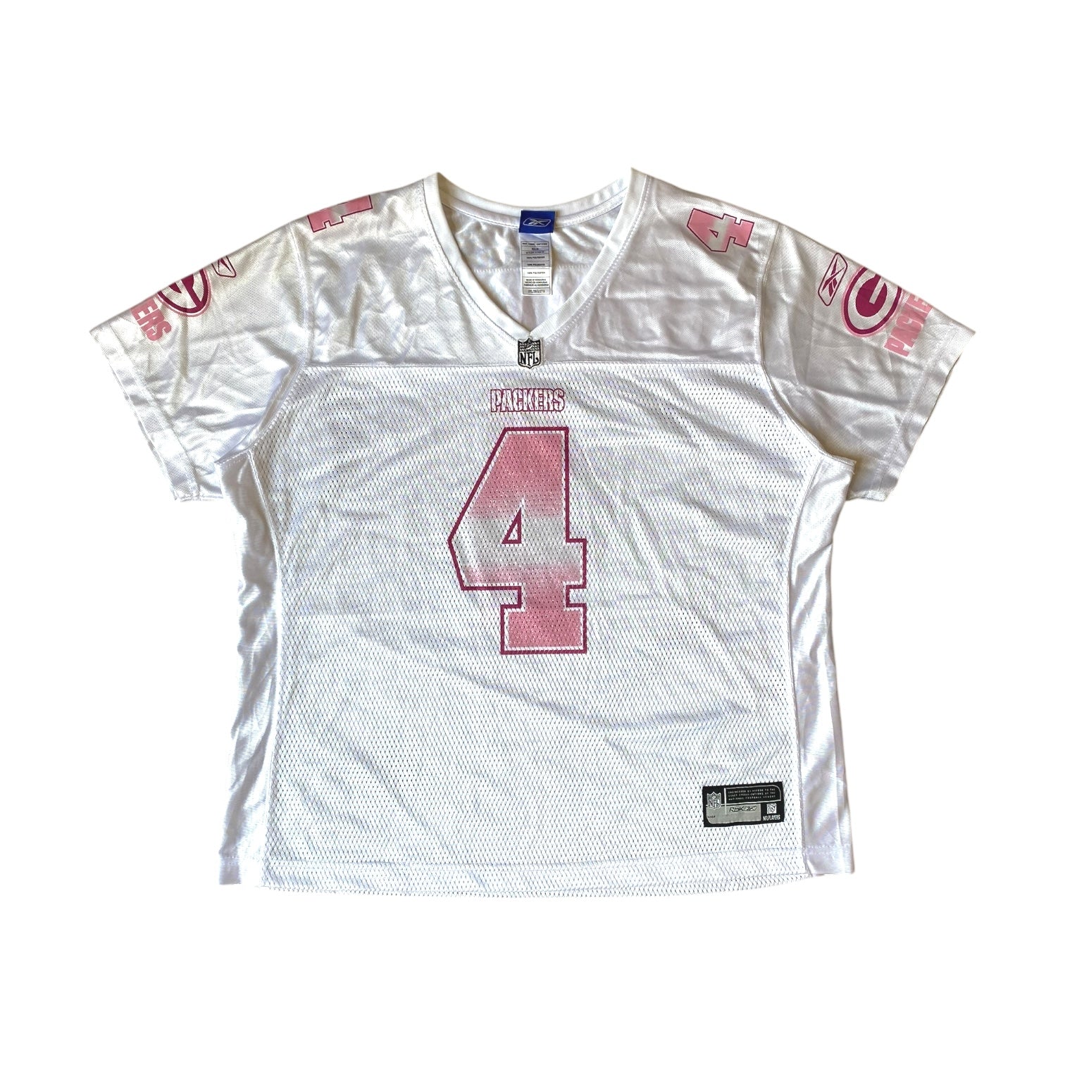 This vintage Brett Favre jersey celebrates one of Green Bay’s most iconic quarterbacks. Designed in a women’s fit, it delivers classic NFL aesthetics with a tailored edge — perfect for collectors and game-day styling alike.