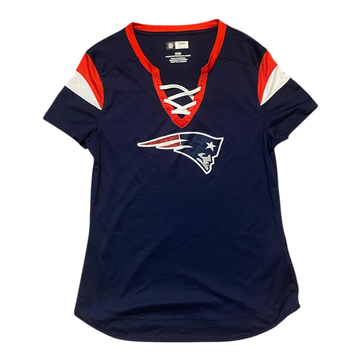 Rep the red, white, and blue in sleek style with this New England Patriots women’s jersey. Designed with a tailored fit for a modern silhouette, this piece brings sporty elegance to team spirit — perfect for game day or casual streetwear with a punch of patriot pride.