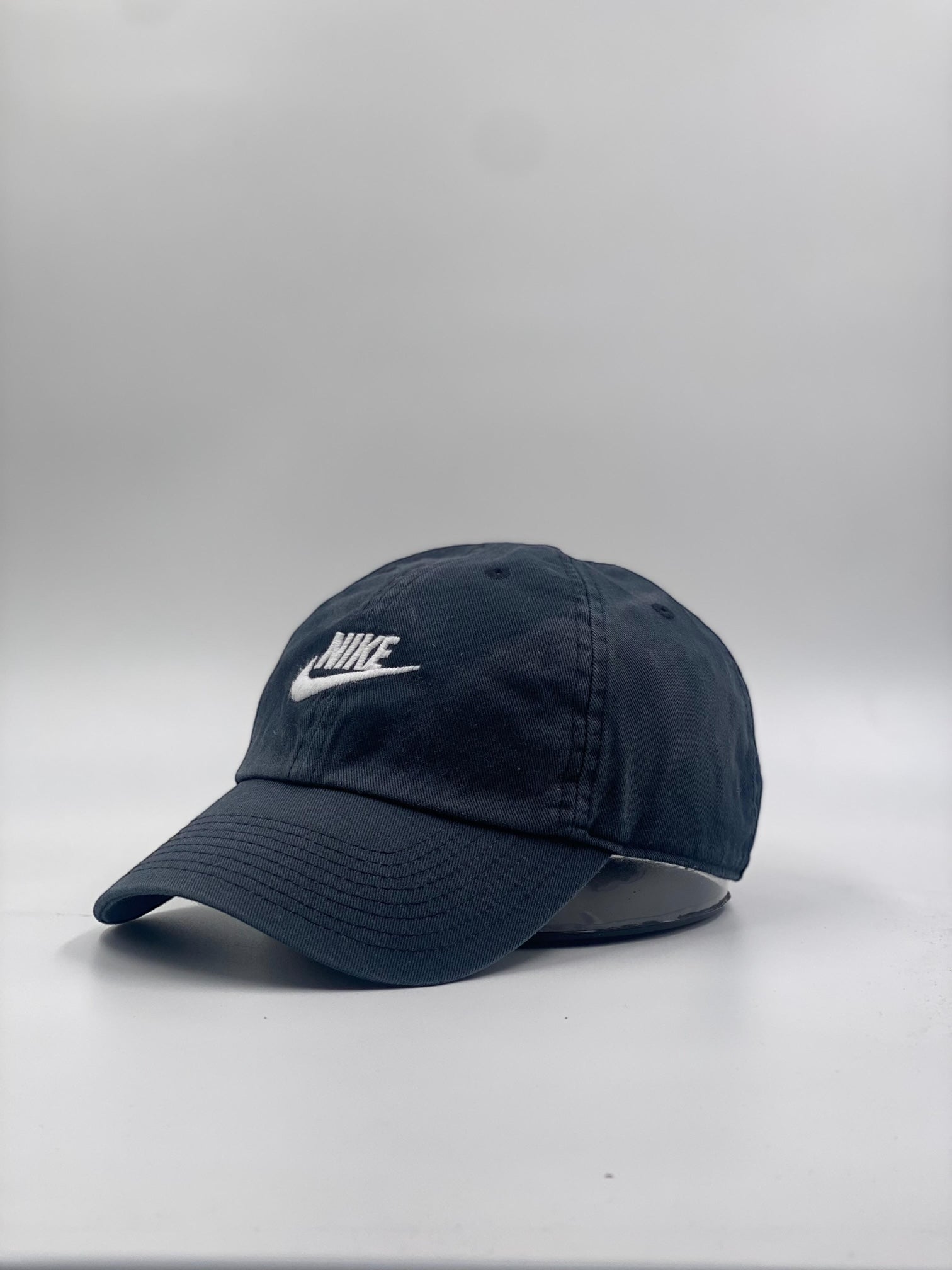 A sleek staple for any streetwear rotation, this black Nike cap features both the iconic swoosh and bold Nike lettering front and center. Understated but confident, it delivers athletic heritage with minimal effort.
