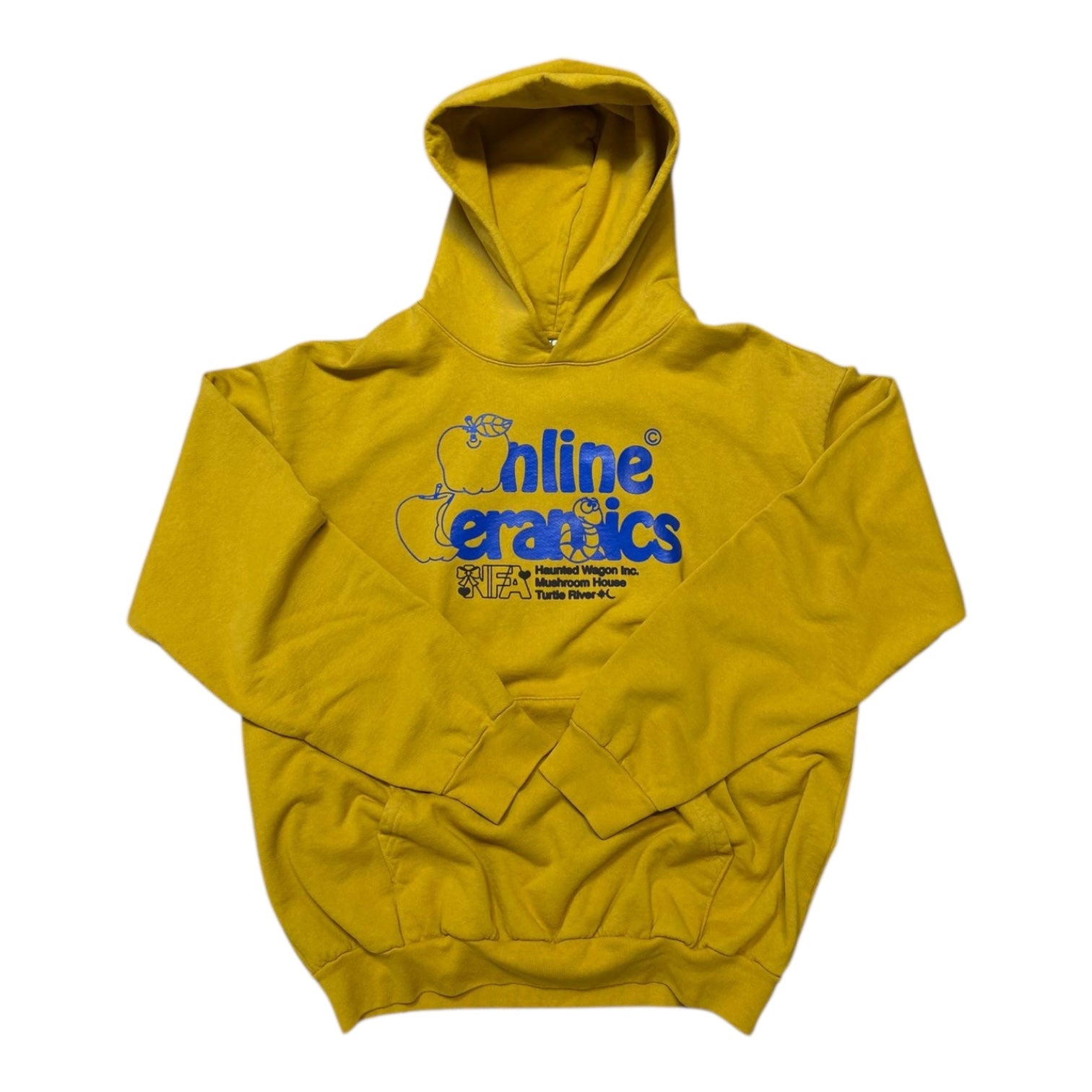 Vibrant and unmistakably playful, this Online Ceramics “Haunted Wagon” yellow hoodie embodies the brand’s signature mix of surreal graphics and positive counterculture vibes. The bold color and whimsical design make it an instant conversation starter.
