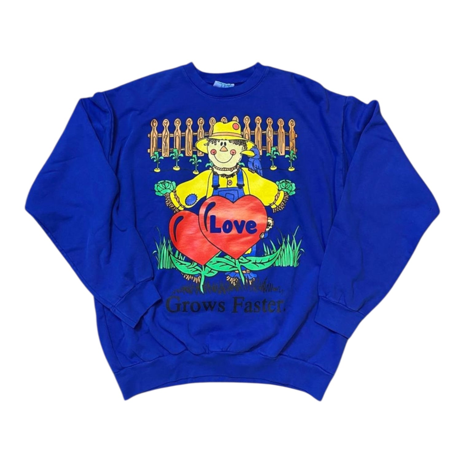 Radiating optimism with an irreverent twist, this Online Ceramics “Love Grows Faster” blue sweater fuses playful messaging and bold color. Known for their eco-minded production and cult graphics, Online Ceramics delivers a piece that feels both comforting and subversive.