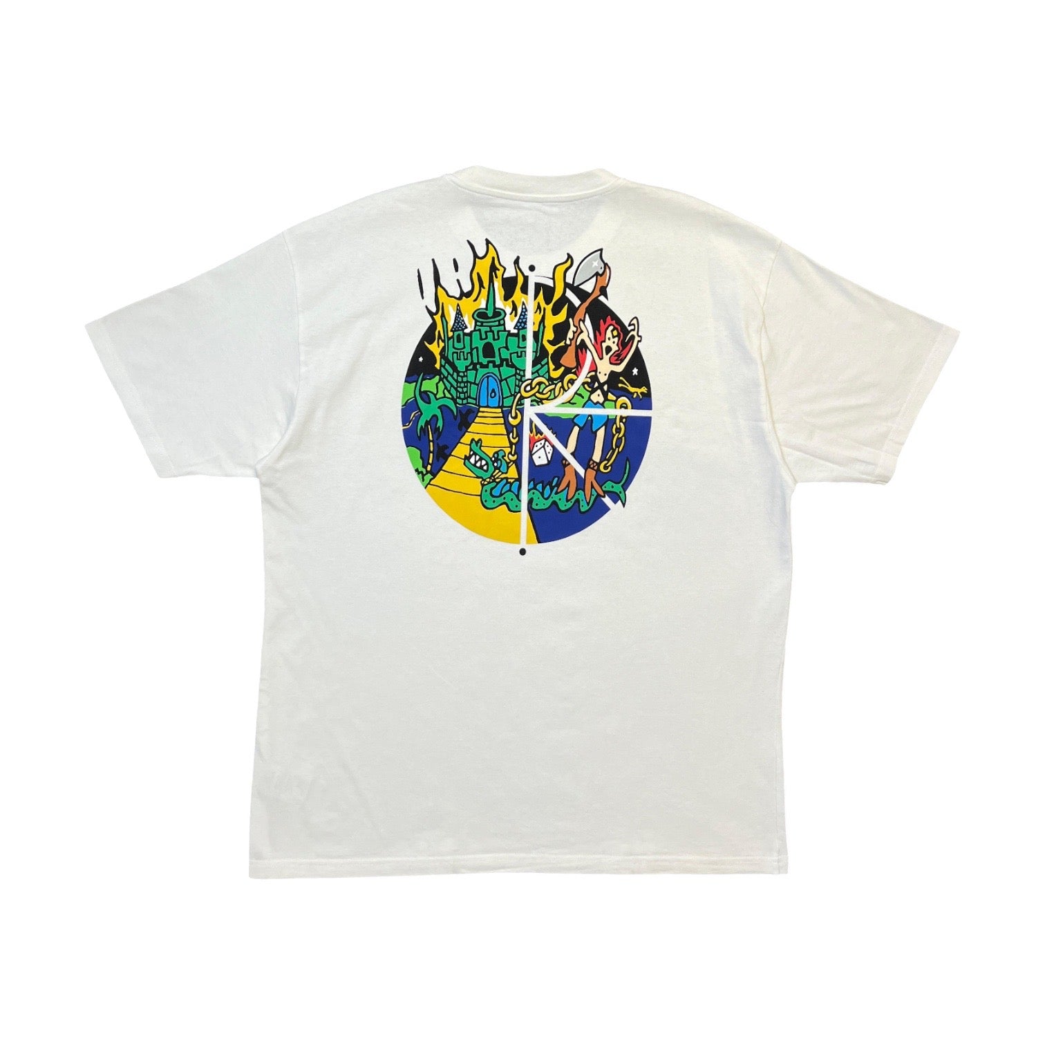 The Polar Castle On Fire T-Shirt features surreal, hand-drawn style graphics that lean into the brand’s artistic edge. Compact in fit with a slightly cropped length, it’s made for those who prefer their skatewear with a touch of storytelling.