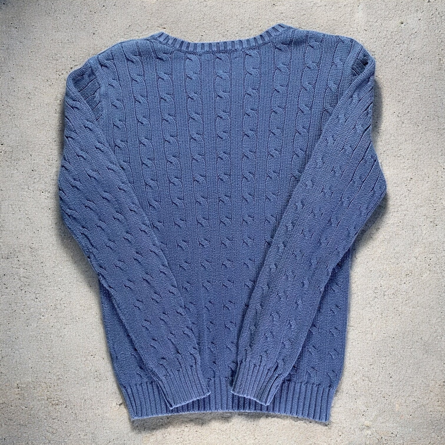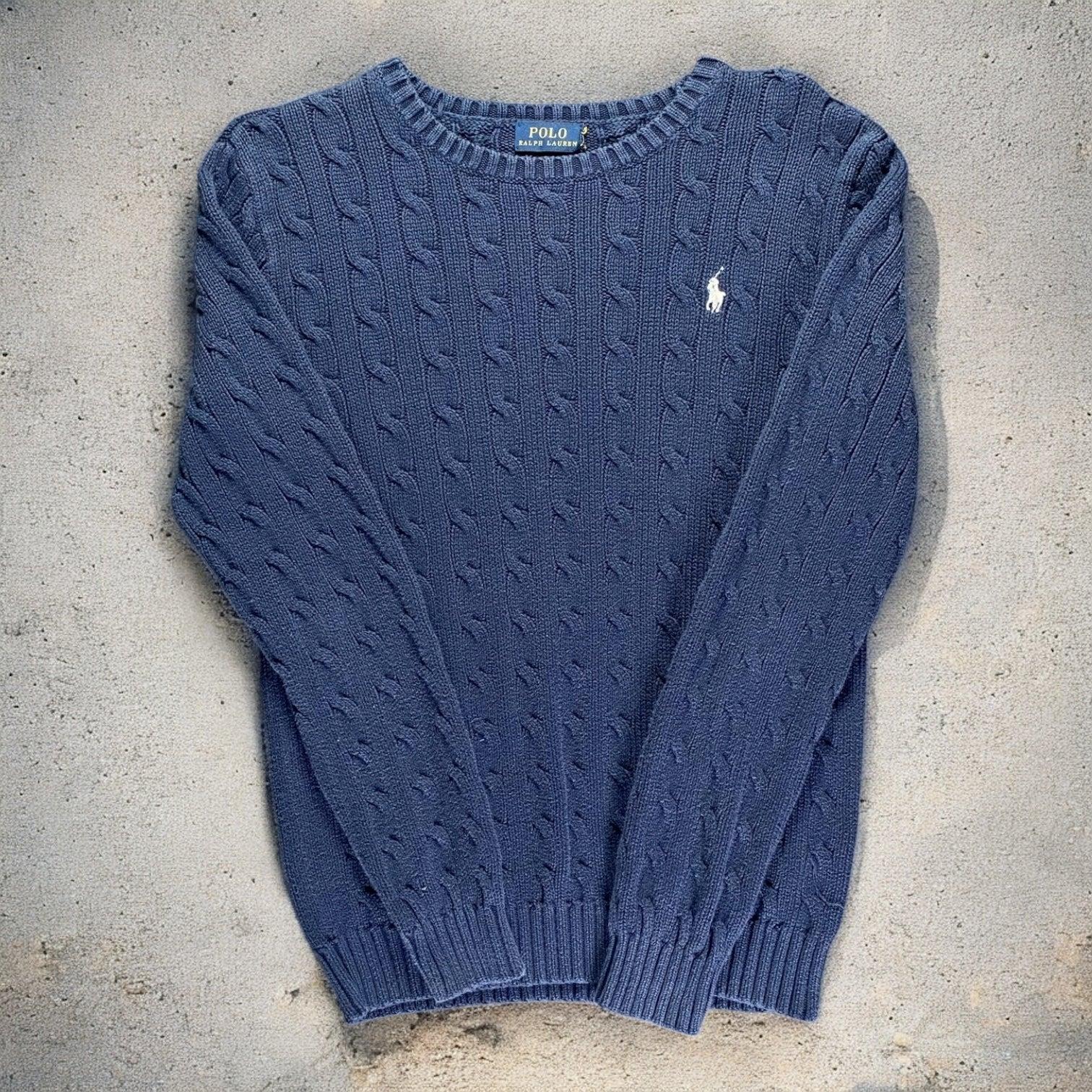 Polo Ralph Lauren Cable-Knit Cotton Sweater — a classic navy blue cable-knit sweater crafted from soft cotton. Timeless design offers both comfort and elevated style for casual or smart-casual outfits.
