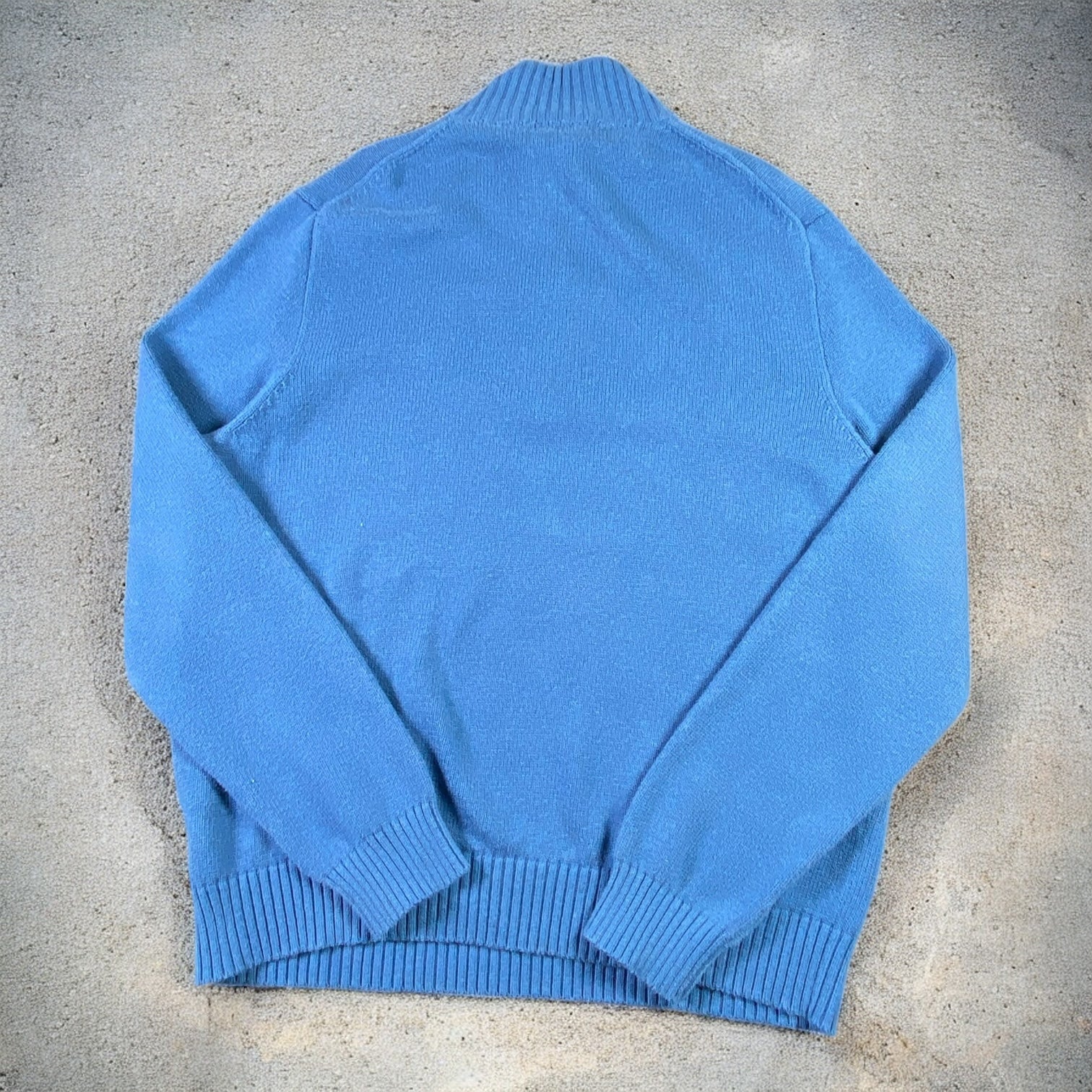 Polo Ralph Lauren Quarter-Zip Long Sleeve Dark Blue Sweater — a classic vintage piece featuring the signature yellow embroidered Polo logo. Timeless design with a comfortable fit, perfect for layering or standalone wear.