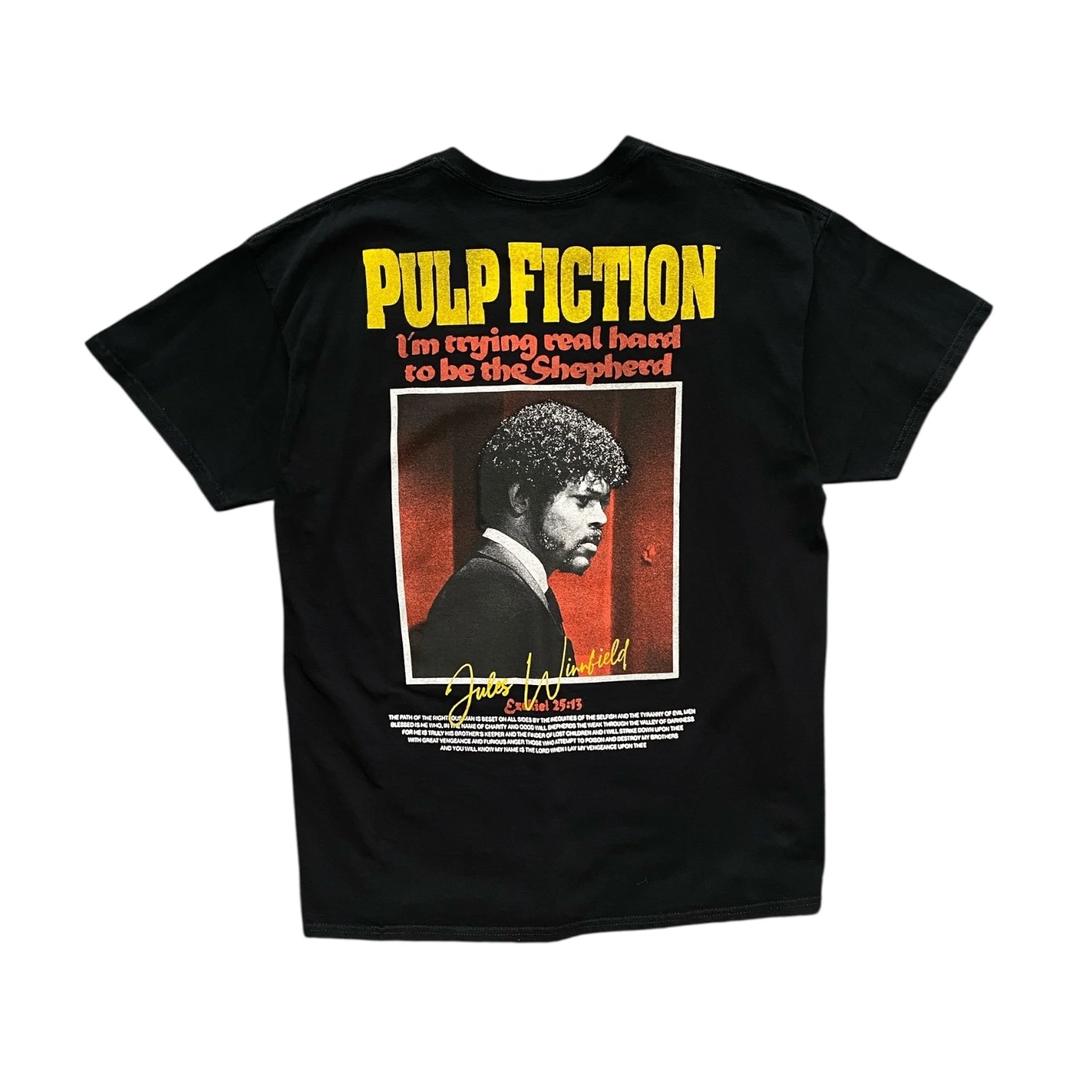 Classic Pulp Fiction Jules Winnfield tee featuring iconic movie graphics with a bold vintage style. A must-have for film fans and streetwear enthusiasts alike.