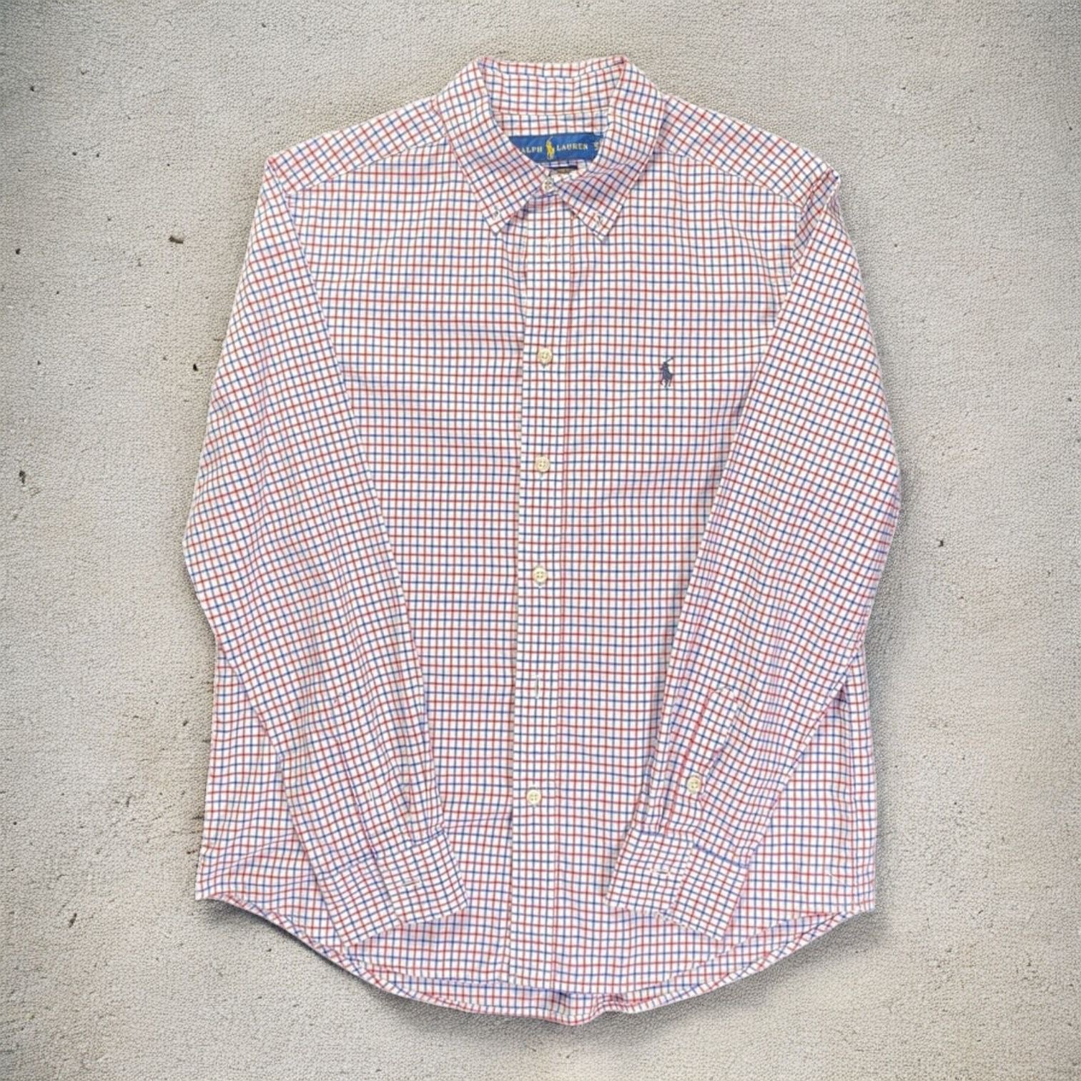 Classic Ralph Lauren checkered shirt with long sleeves, offering a timeless design and comfortable fit.