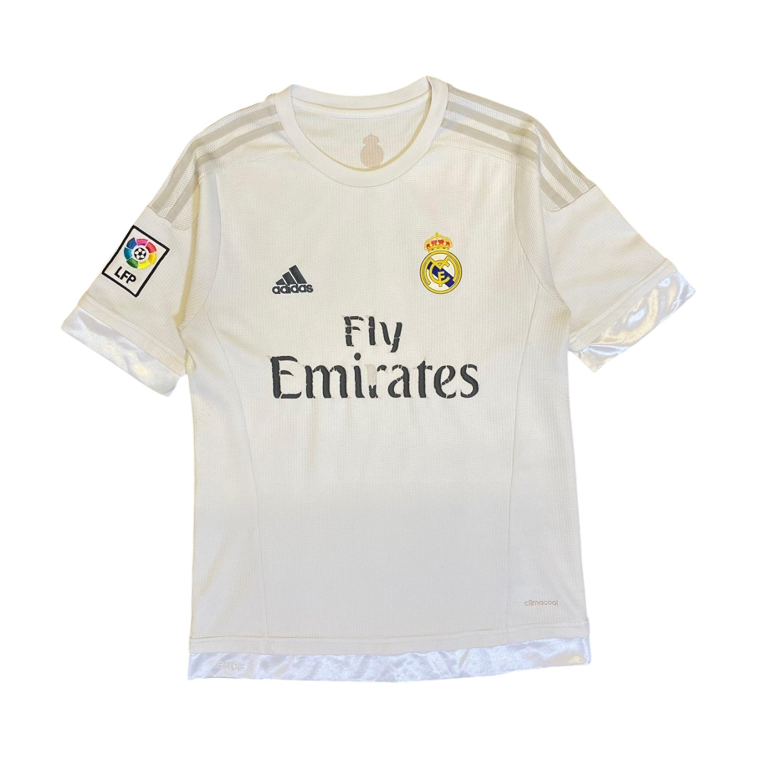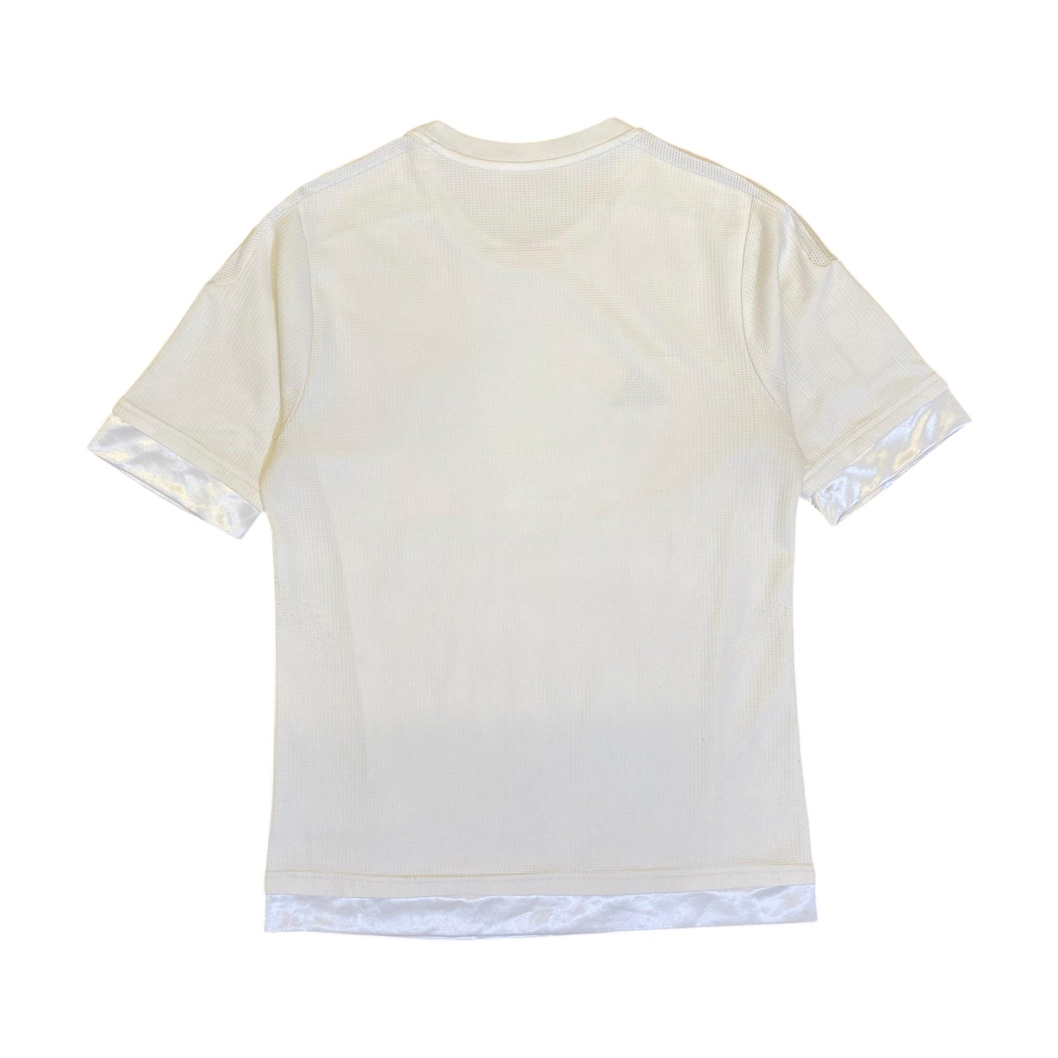 A timeless piece from football royalty, this Real Madrid CF white jersey blends heritage and simplicity. While the fabric remains in great shape, the logo shows signs of fading — a subtle touch that adds vintage character and tells a story of wear and devotion.