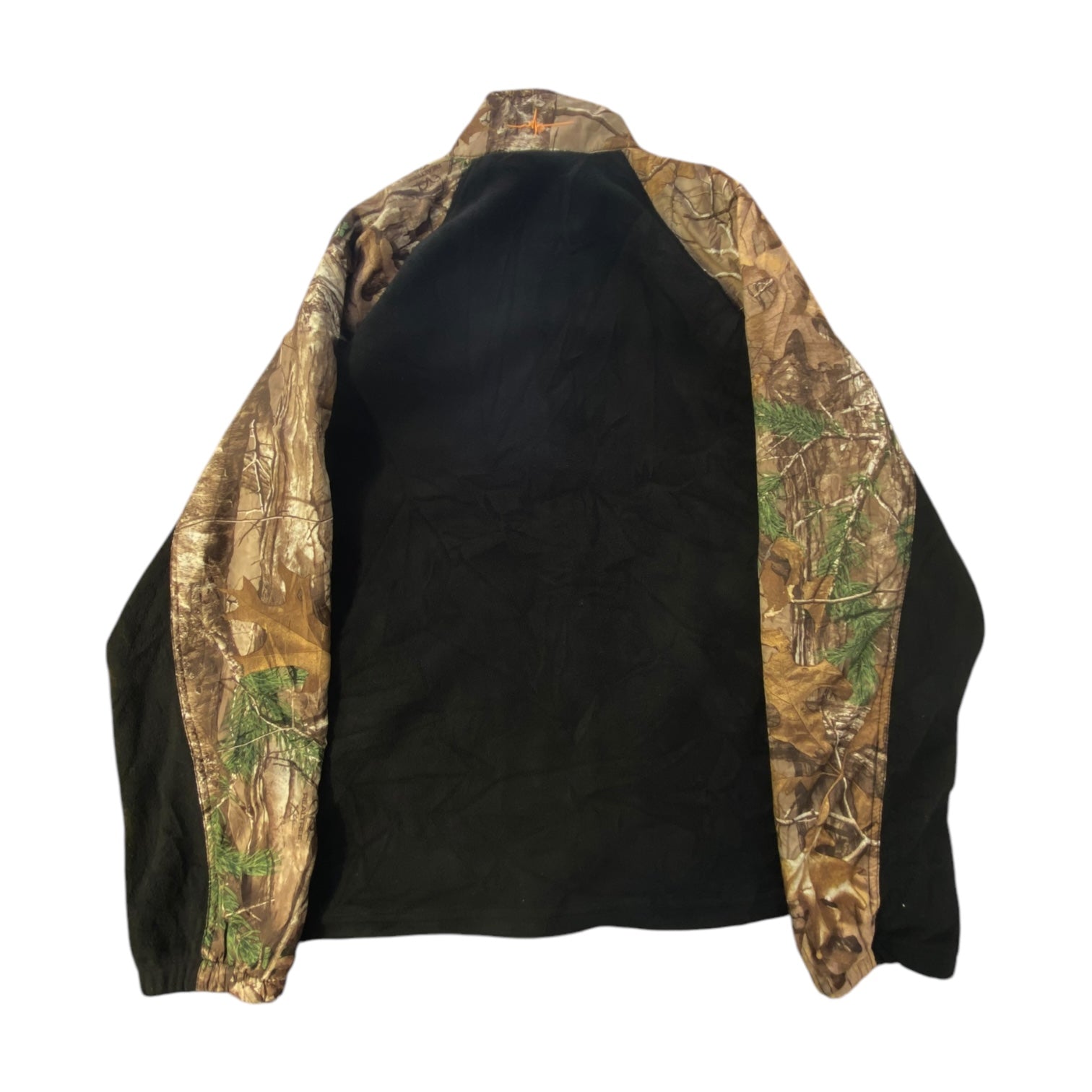 This jacket is in excellent condition with minimal signs of wear. The black and camo design remains vibrant, and the fabric is in great shape, ensuring lasting comfort and durability.