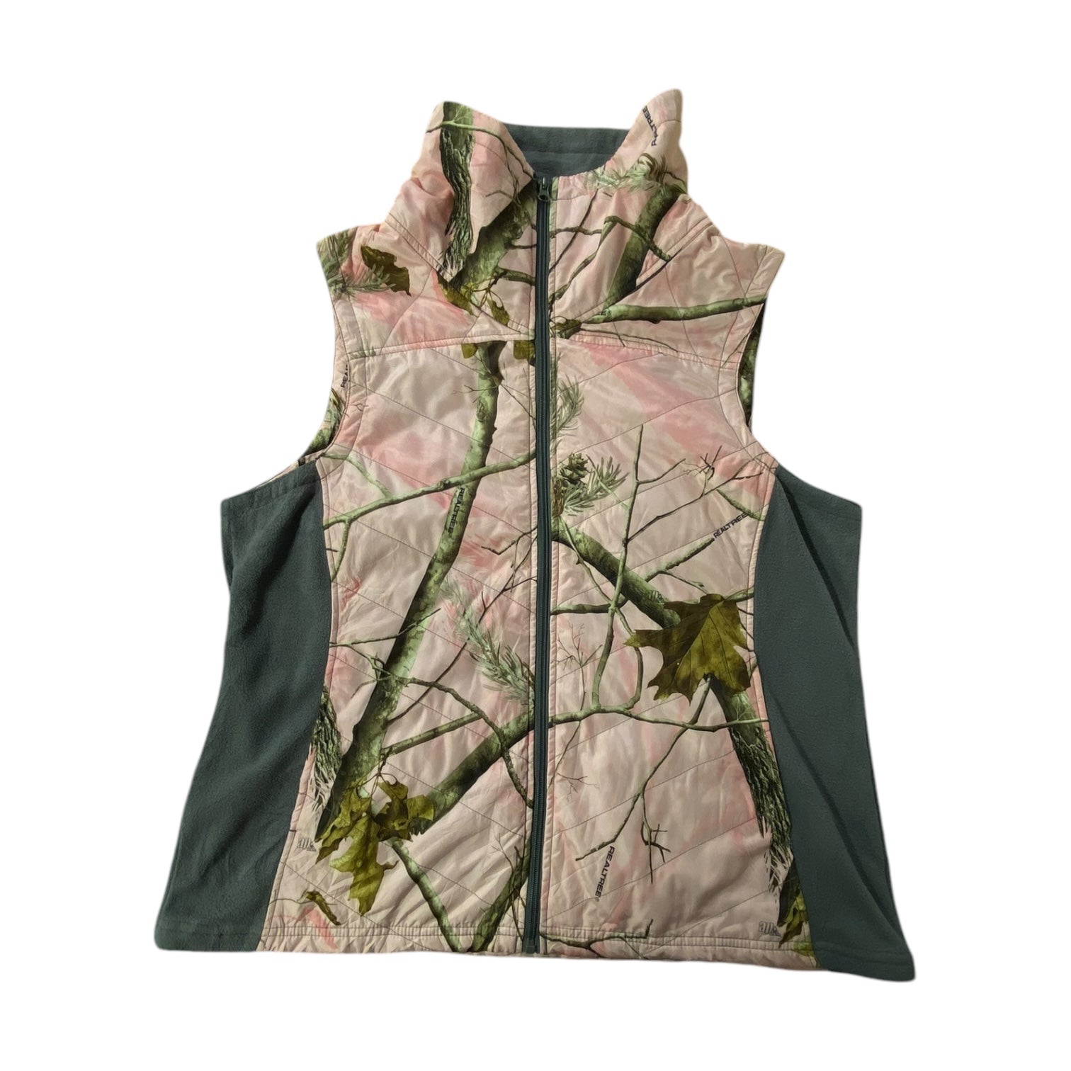 This pink vest is in excellent condition, showing minimal signs of wear. The Realtree camo pattern and pink accents remain vibrant, and the fabric continues to provide durability and comfort, making it a great addition to your outdoor wardrobe.