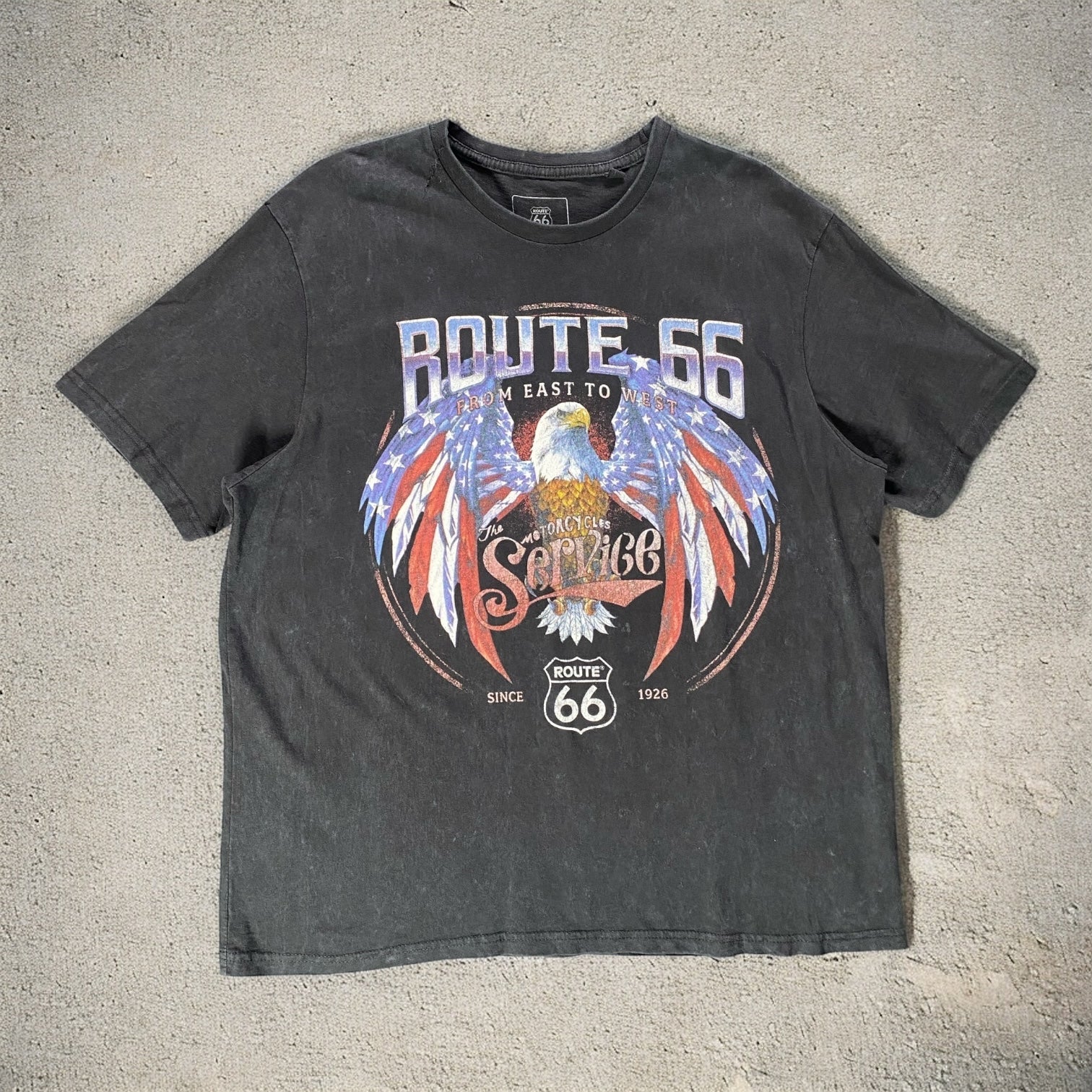 Route 66 From East To West Black T-shirt — a vintage graphic tee celebrating the iconic American highway. Bold design and classic style make it perfect for streetwear or casual vintage-inspired outfits.