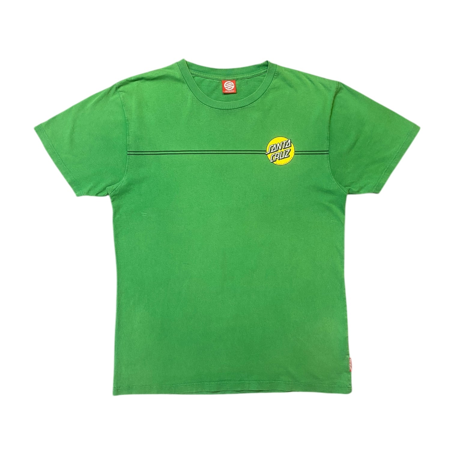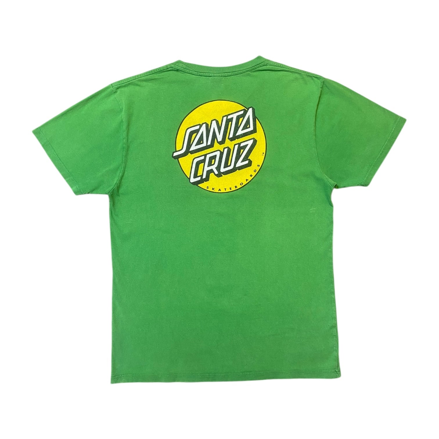 Bright and classic, this Santa Cruz green T-shirt showcases the brand’s skate heritage in a clean, everyday silhouette. Though tagged large, it fits closer to a medium, making it a versatile staple for a more tailored look.