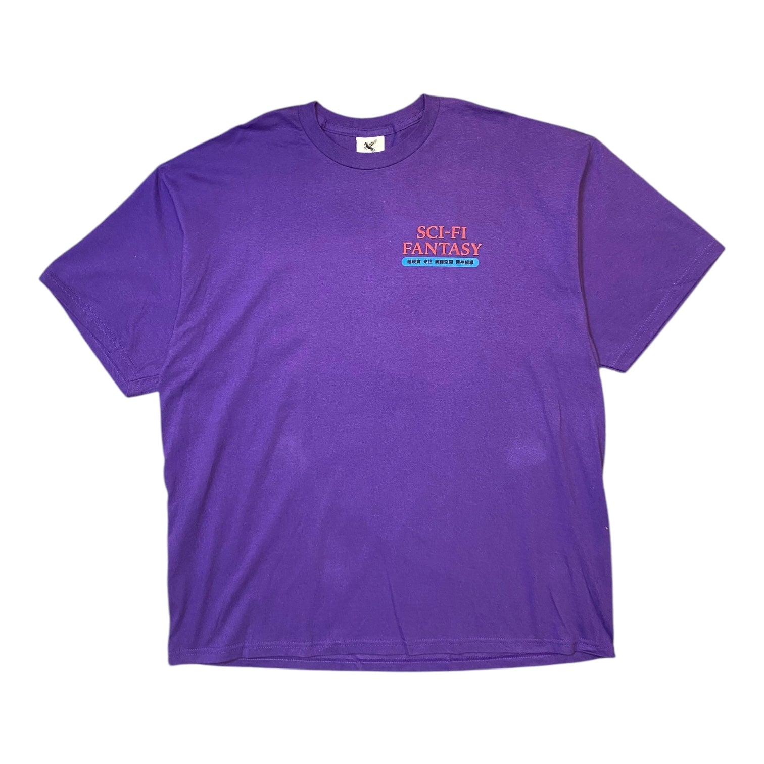 A surreal blend of streetwear and dreamlike design, this deep purple tee from Sci-Fi Fantasy encapsulates the brand’s distinctive, left-field visual language. With its mysterious tone and clean silhouette, it’s a staple for those drawn to the offbeat.